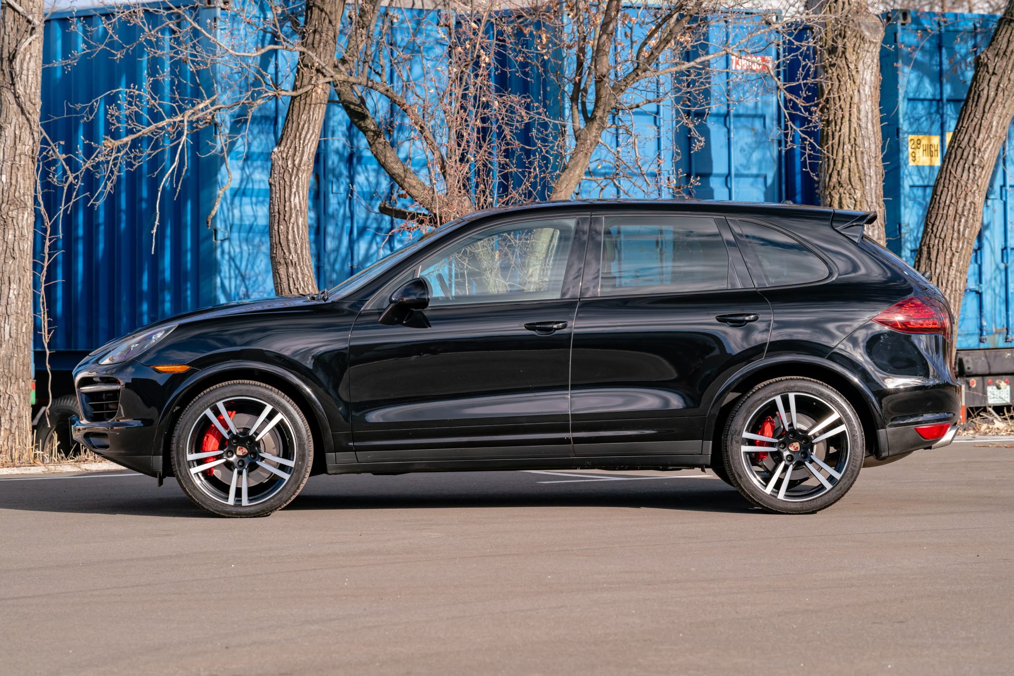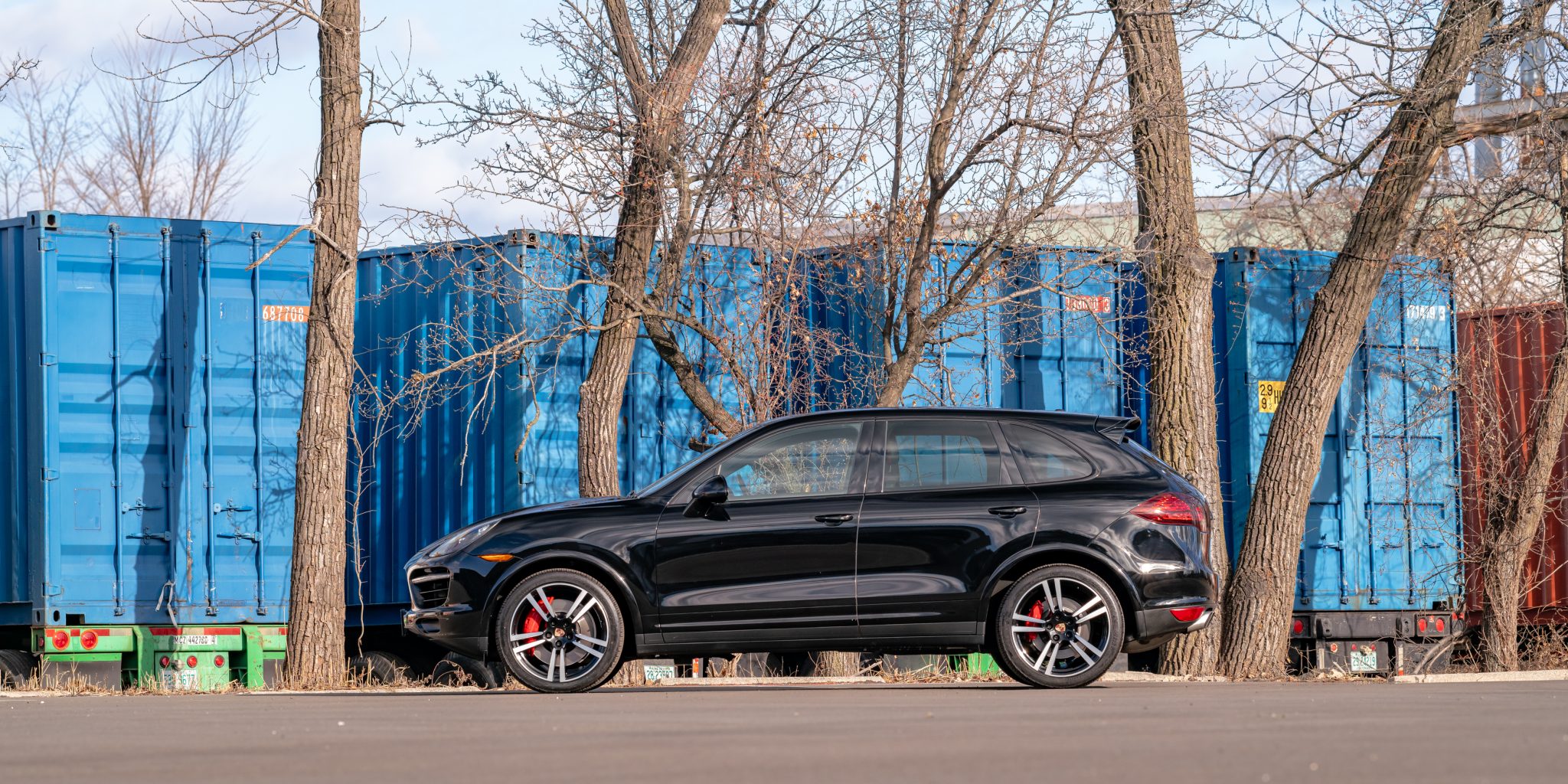 The 21″ 911 Turbo II alloy wheels are mounted with a mix of 295/35 Falken Azenis tires that were installed in December 2024. Factory equipment included an adjustable air suspension, Porsche Active Suspension Management (PASM), and Power Steering Plus. Stopping power is provided by red-finished brake calipers over ventilated rotors at each corner.