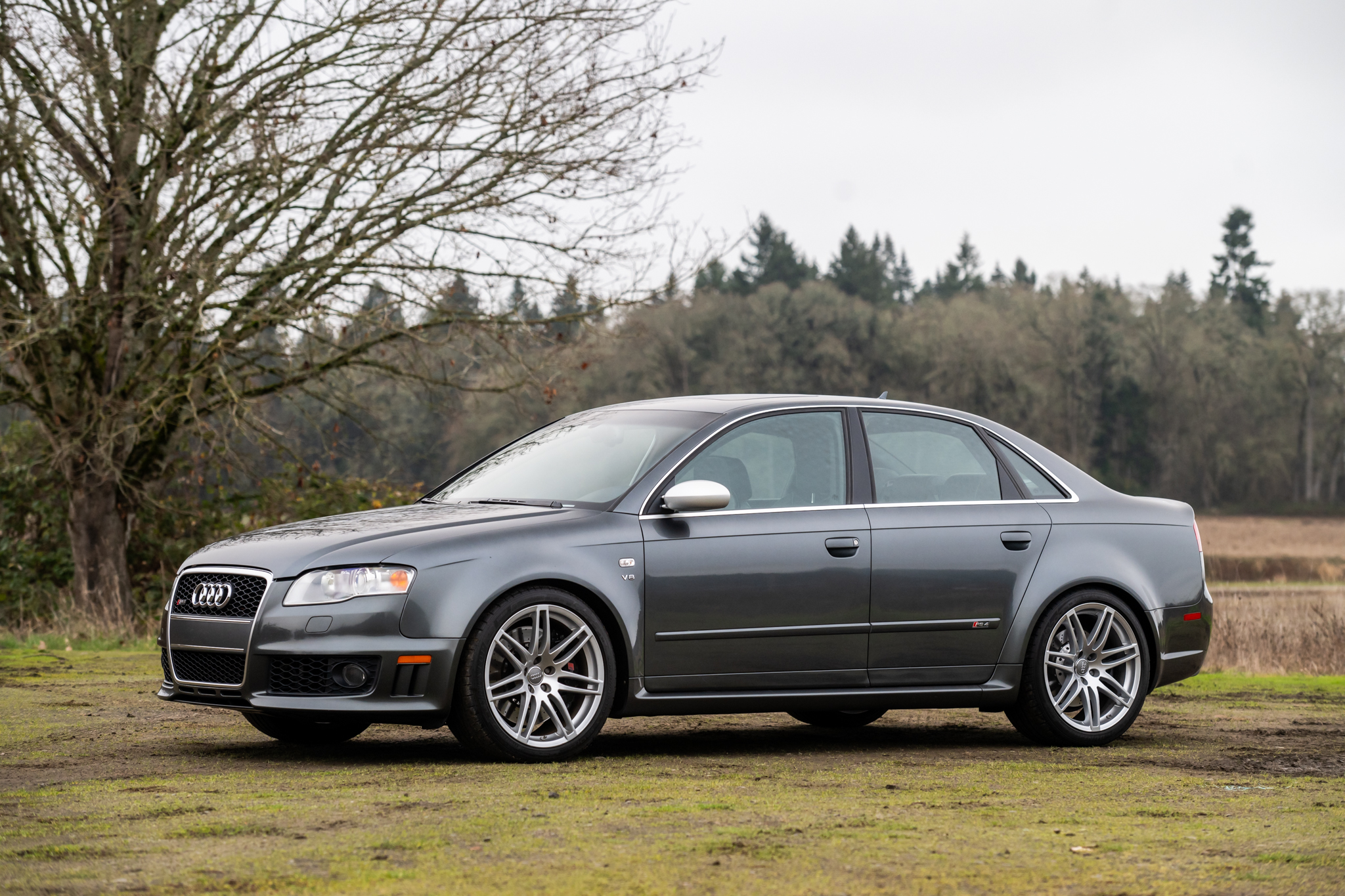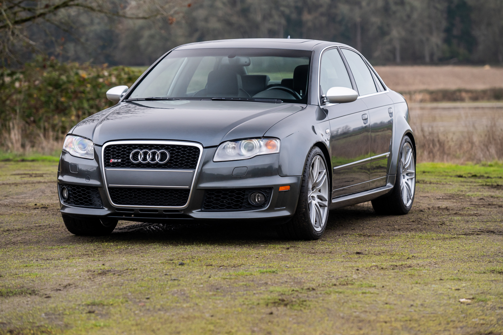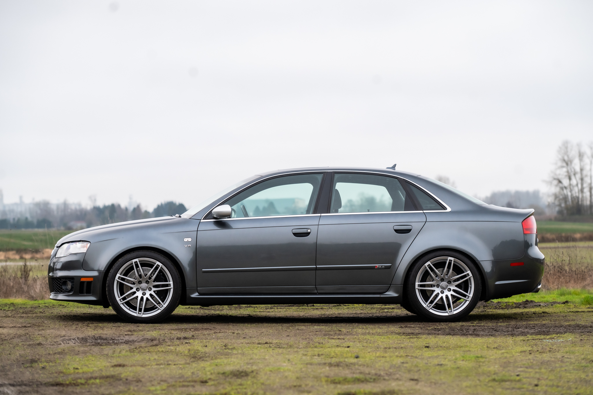 Silver-finished 19″ split-spoke wheels are mounted with 255/35 Dunlop Sport Maxx GT tires. The car is equipped with Dynamic Ride Control suspension, and stopping power is provided by drilled discs at all four corners, with RS-logo eight-piston calipers over 14.4″ rotors up front. The front outer CV boot and wheel were replaced in August 2023.