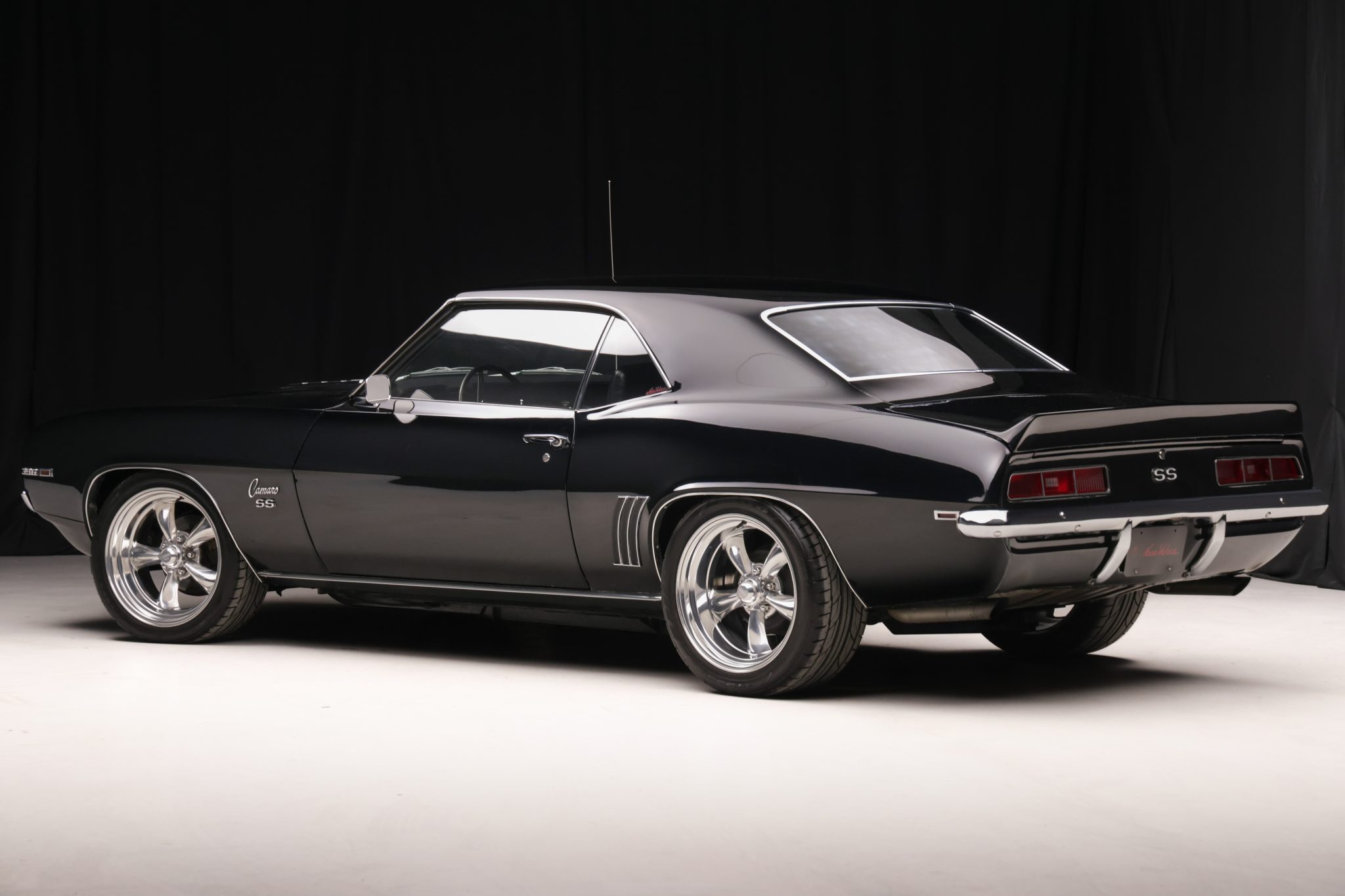 Polished American Racing Torq Thrust wheels are wrapped in 245/40 front and 275/40 rear Nitto NT555 tires. The car is equipped with rear traction bars as well as power steering, and braking is handled by power-assisted front discs and rear drums.