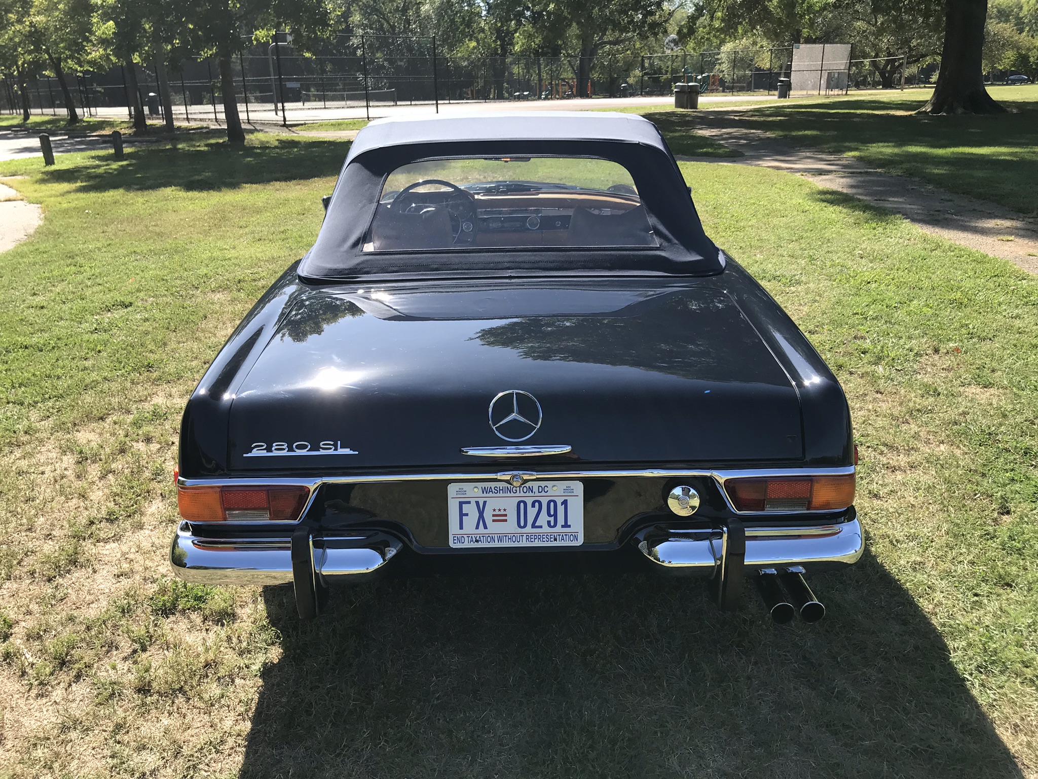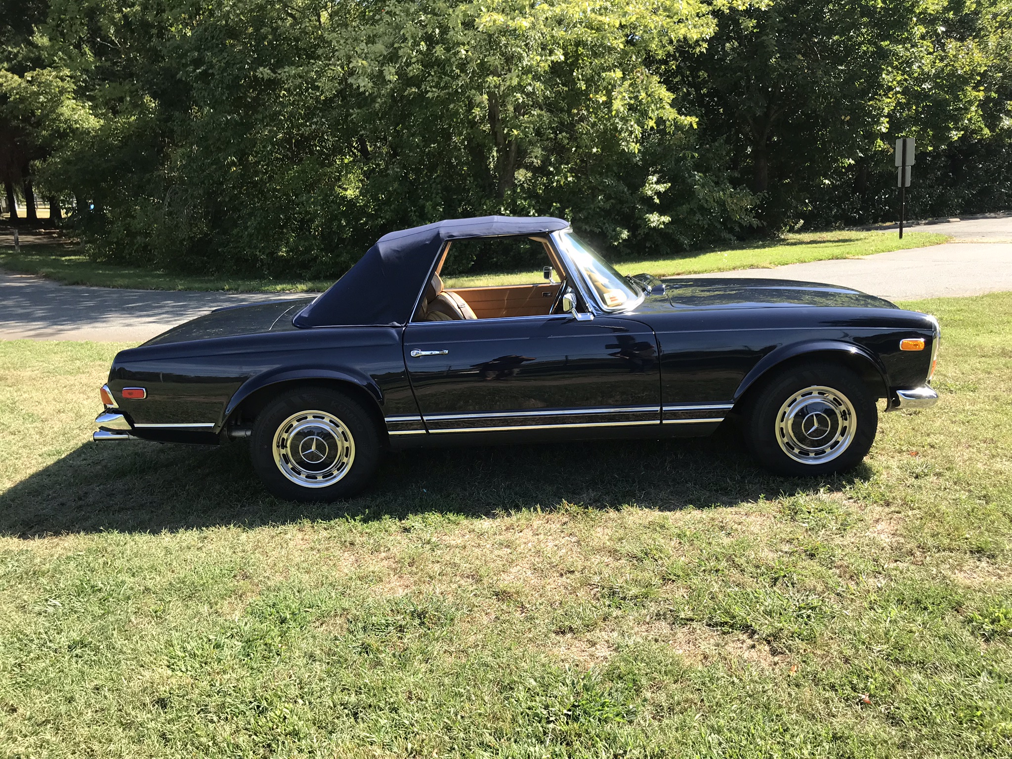 Factory 14″ steel wheels with Mercedes covers are wrapped in 195/70 Kumho Solus tires manufactured and installed in 2018. The suspension and brakes were redone during the aforementioned 1980s refurbishment.