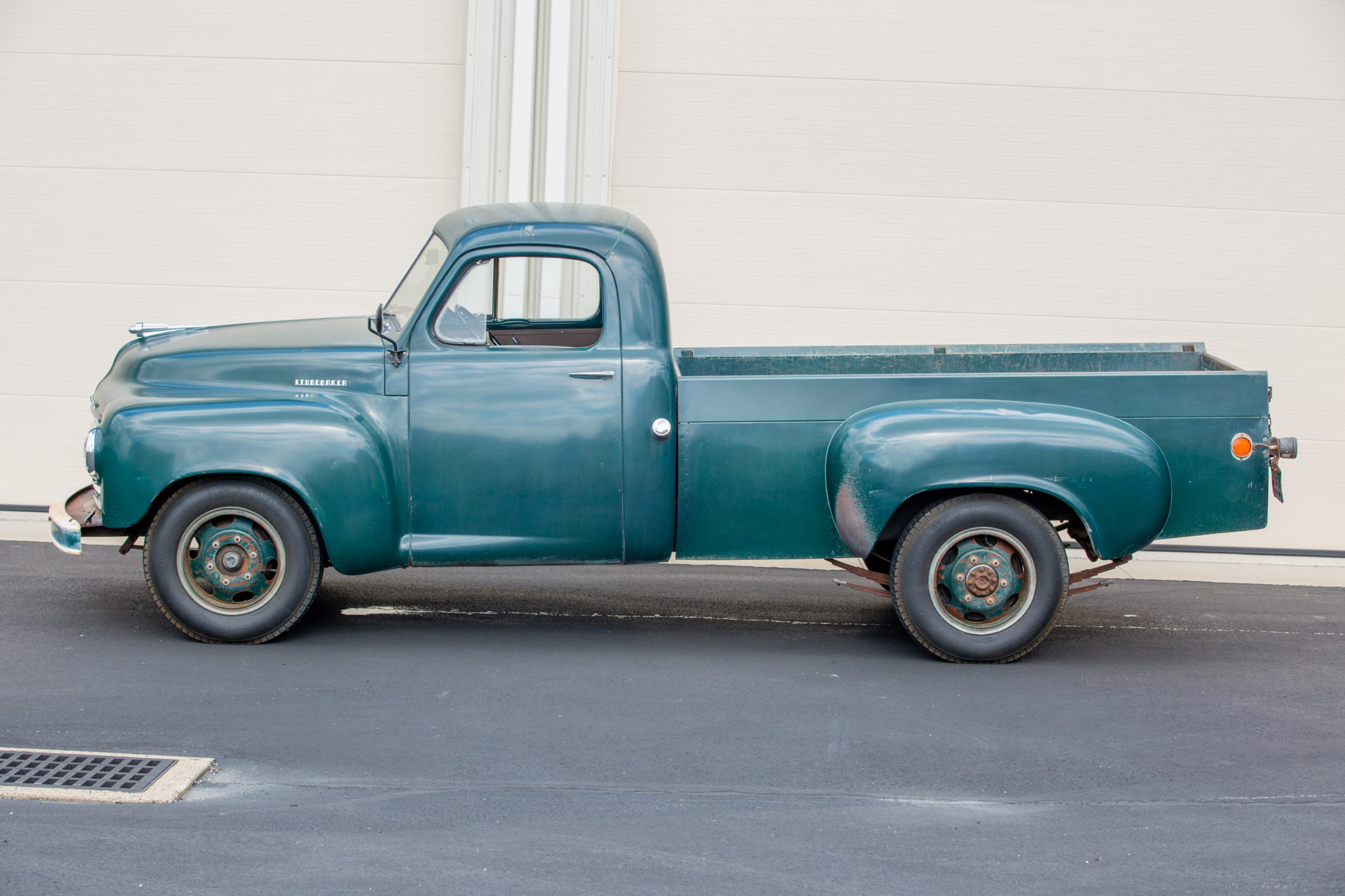 The 16″ six-lug wheels are finished in green and wear Excelsior 7.00-16 tires. An unmounted spare wheel is included in the sale and shown in the gallery. The seller had the four-wheel drum brakes serviced.