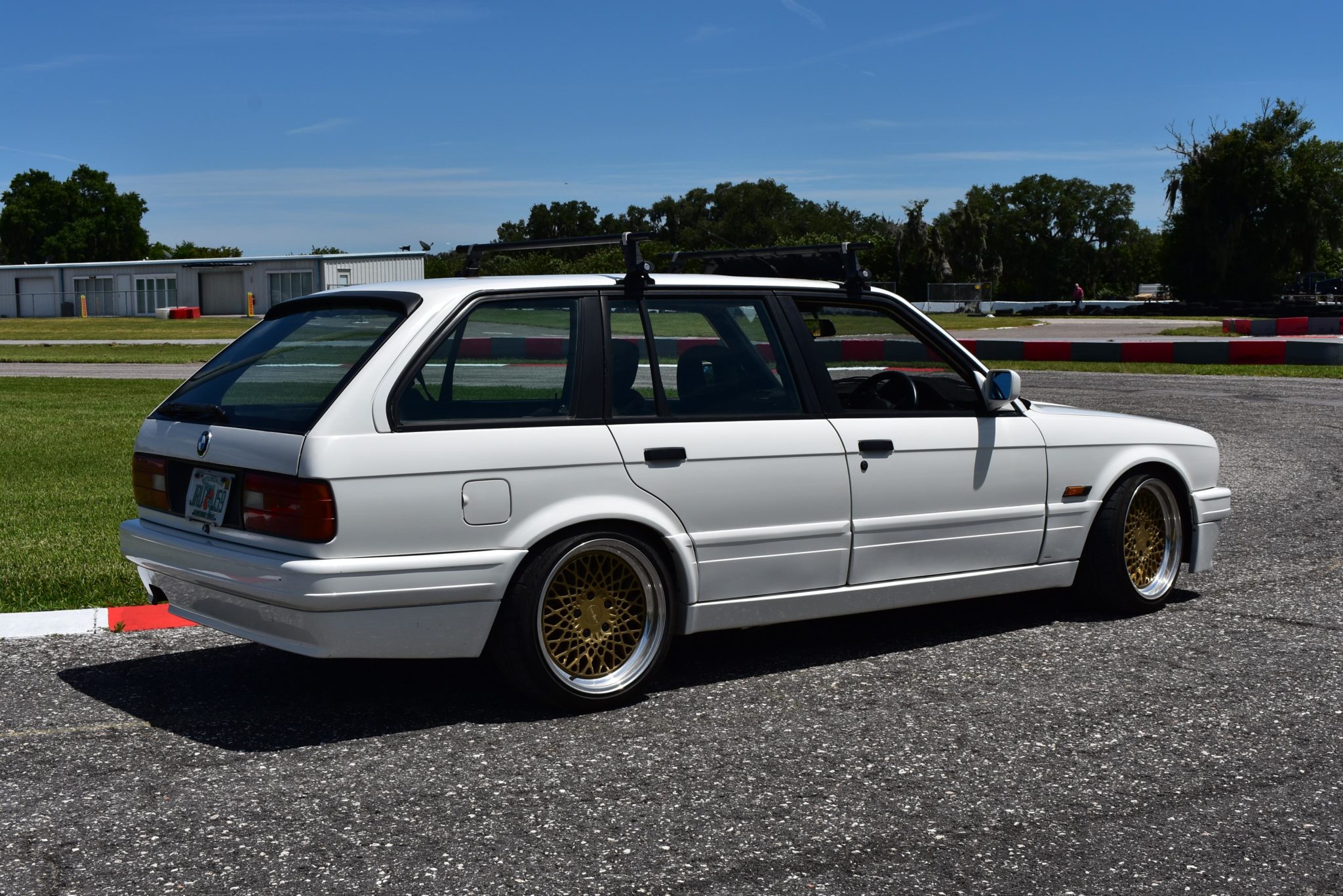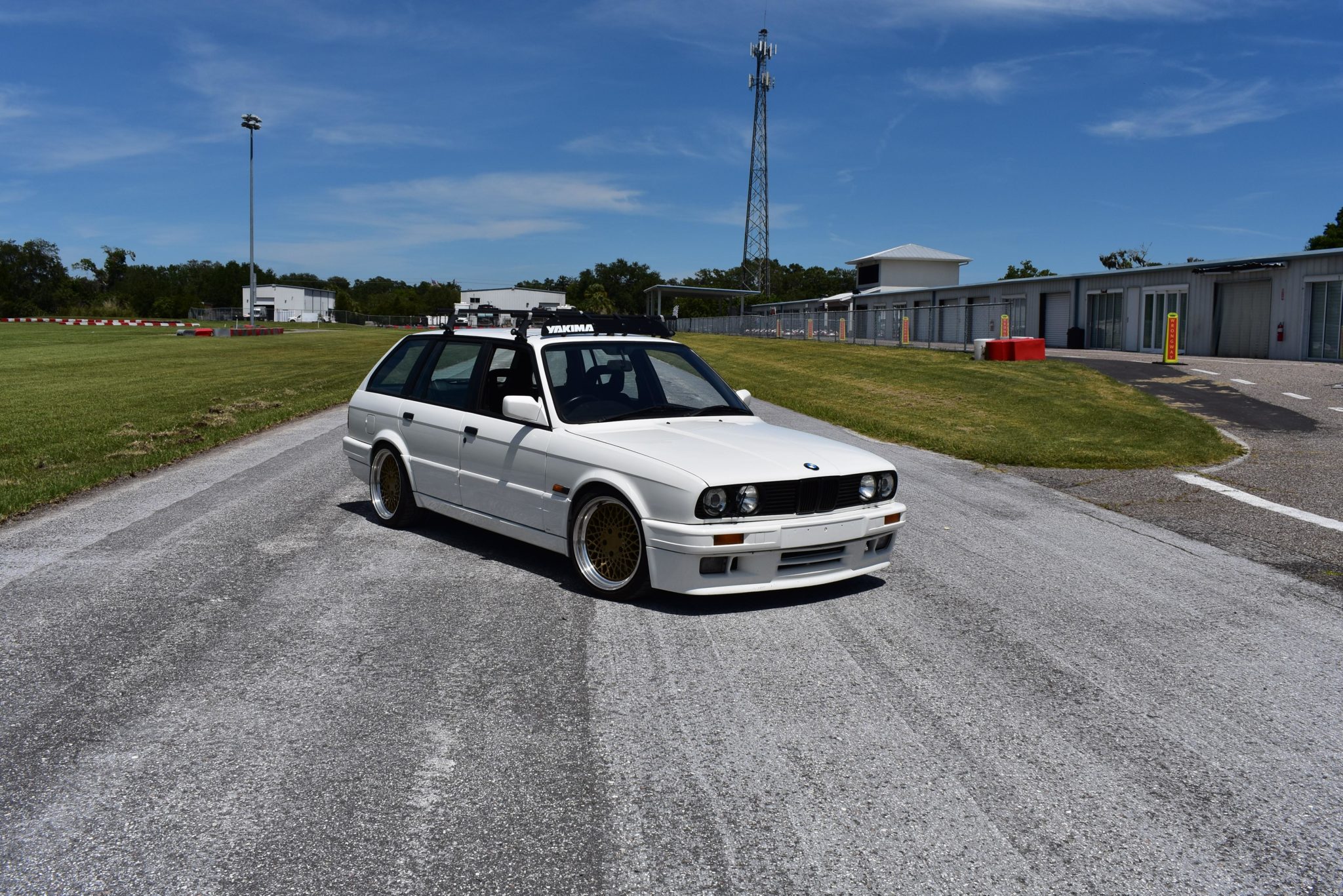 Five-lug 17″ Rotiform basketweave wheels feature gold centers with chrome lips and wear Falken Azenis AT615k tires. UUC sport sway bars are fitted along with Ground Control coilovers, and braking is handled by an E36 M3 big brake kit up front and an E46 325i big brake kit out back. The steering rack was rebuilt in September 2019.