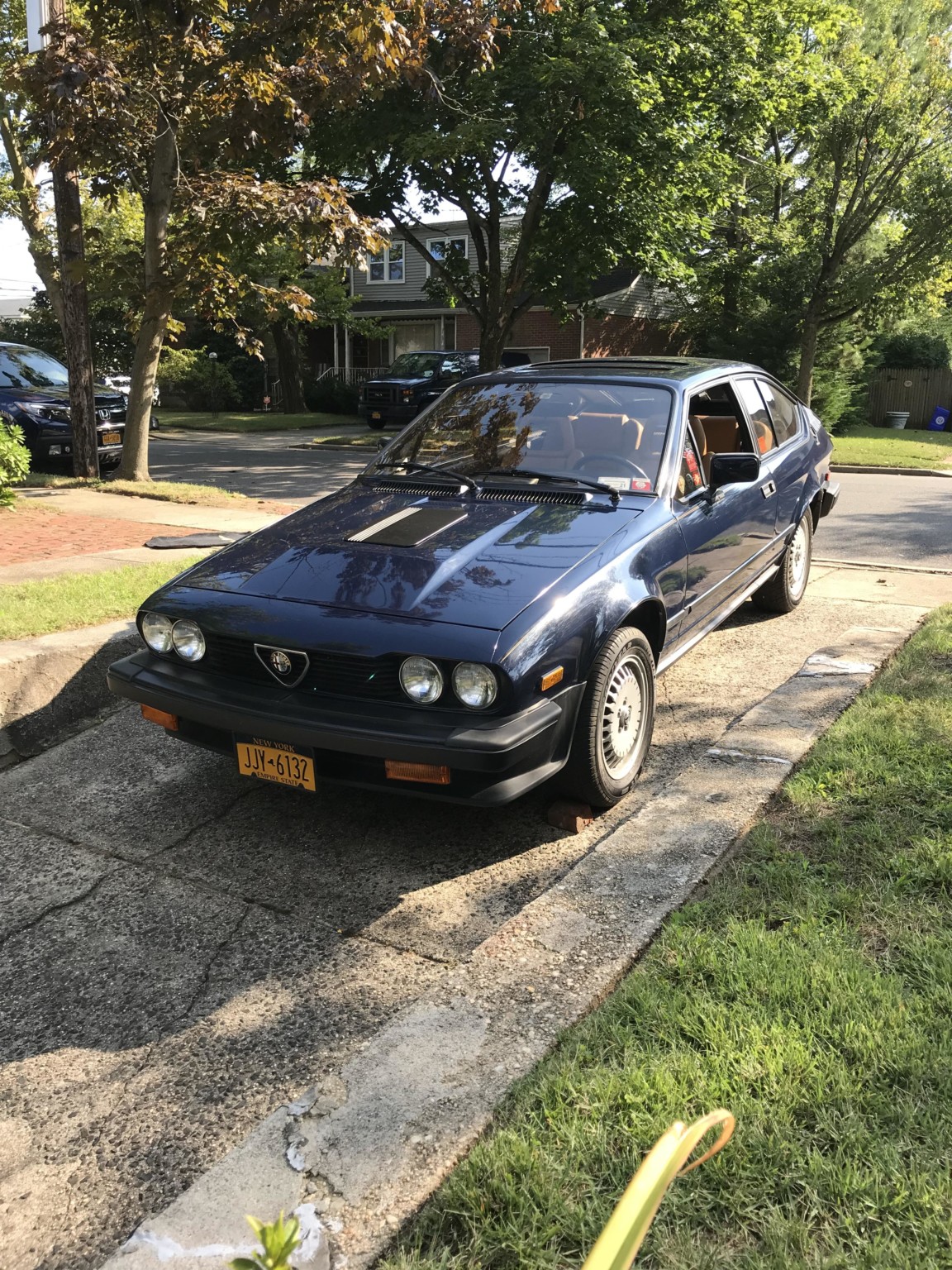 Factory 15″ Speedline alloy wheels with Alfa Romeo center caps are fitted with 205/55 Goodyear Eagle GT HR tires, and a full-sized spare wheel and tire are mounted in the trunk.