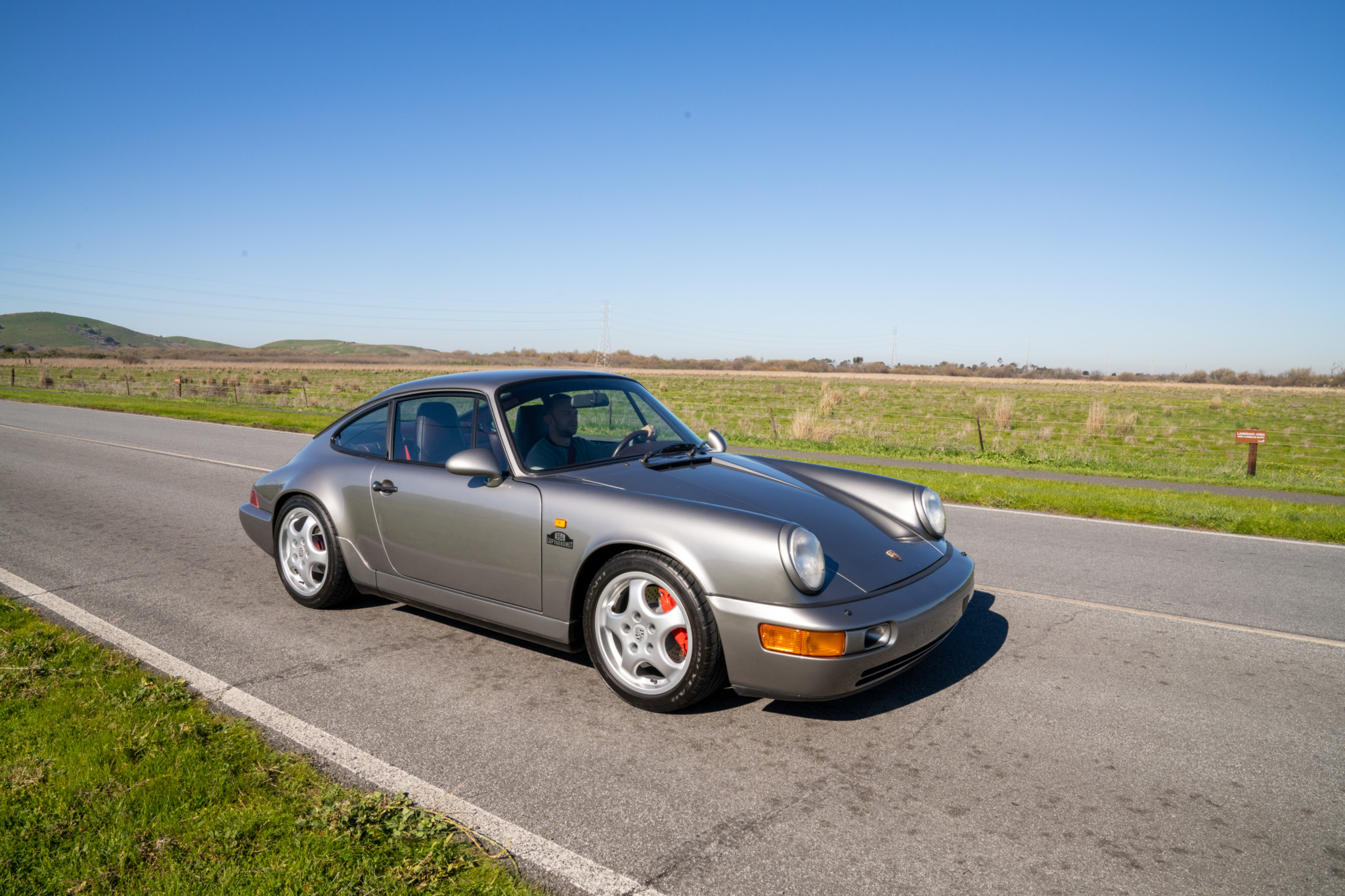 The car is said to retain RoW ride height over 17″x7.5″ and 17″x9″ Cup I wheels wearing Goodyear Revspec RS-02 tires with 2015 date codes. A 993 Turbo brake kit consisting of red calipers, new lines, cross-drilled rotors, and Endless MX72 pads was installed under current ownership along with fresh fluid. Factory parts are included in the sale. The front bump stops should be replaced according to the seller.
