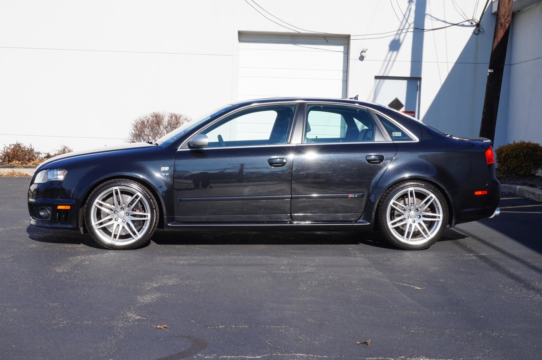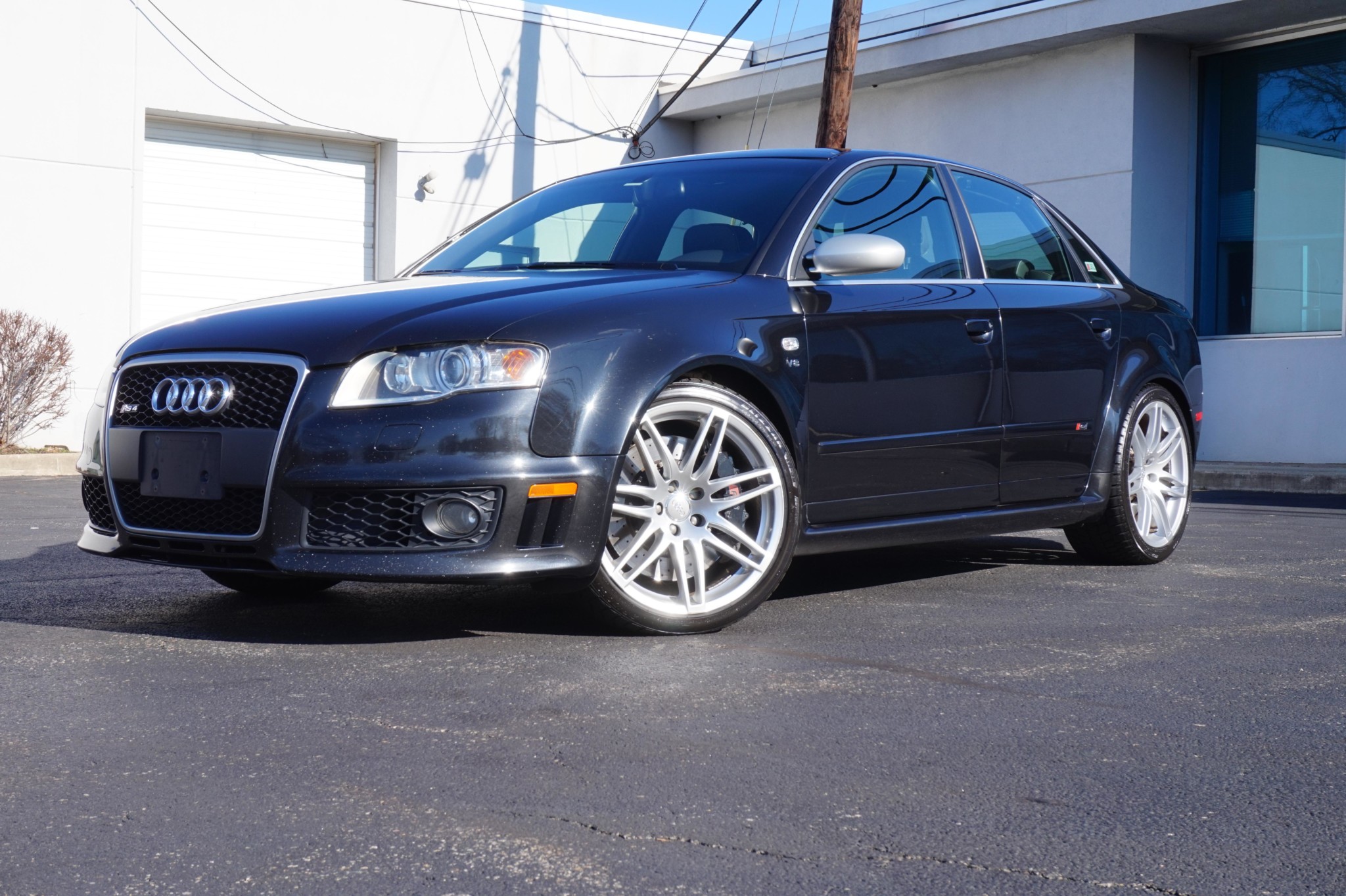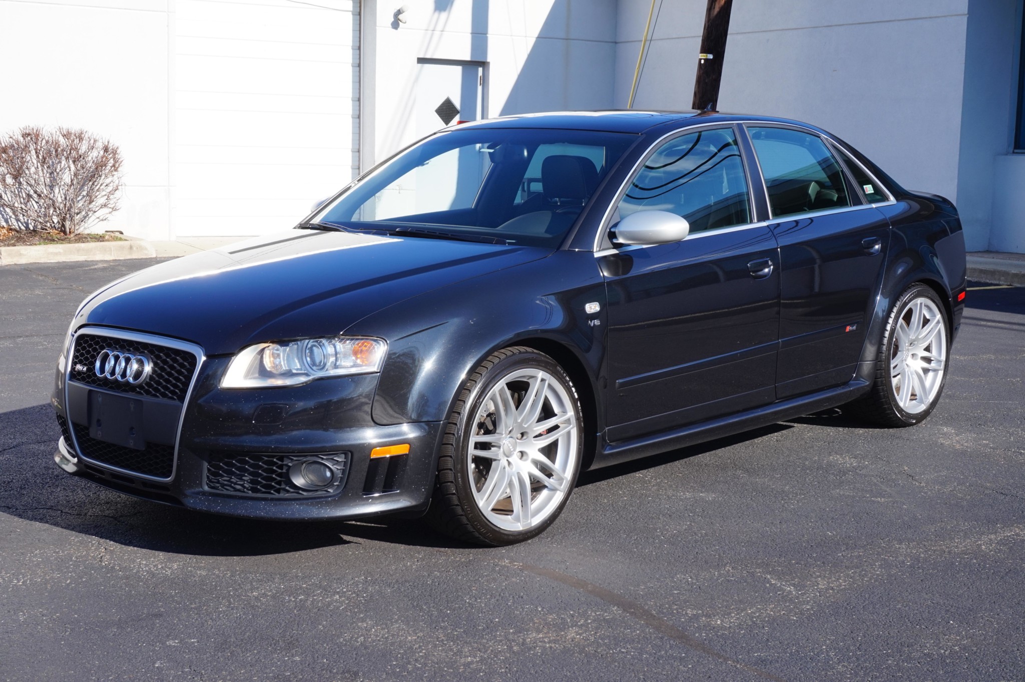 Factory 19″ seven-spoke wheels wear 255/35 front and 265/35 rear Bridgestone Blizzak winter tires. The RS4 came standard with multi-piston front brakes and cross-drilled rotors. The selling dealer notes scrapes on both bumpers and curb rash on the wheels. Detailed photos can be viewed in the gallery.