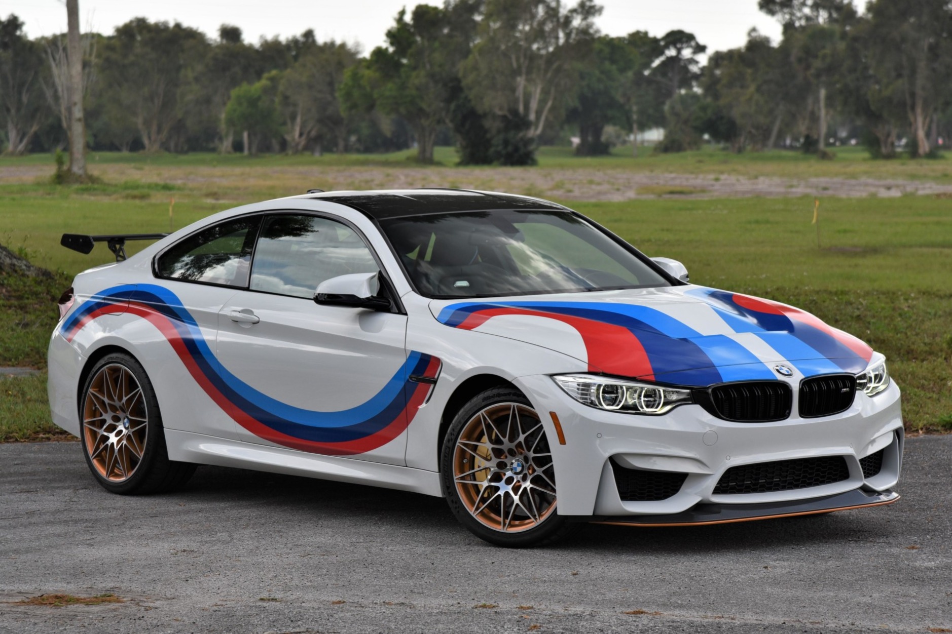 The forged 19″ front and 20″ rear BMW 666M wheels are finished in Acid Orange and wear Michelin Pilot Sport Cup 2 tires. The three-way adjustable dampers have external reservoirs and can be used to lower the car by as much as 0.8 inch. Braking is handled by carbon-ceramic rotors along with six-piston front calipers.
