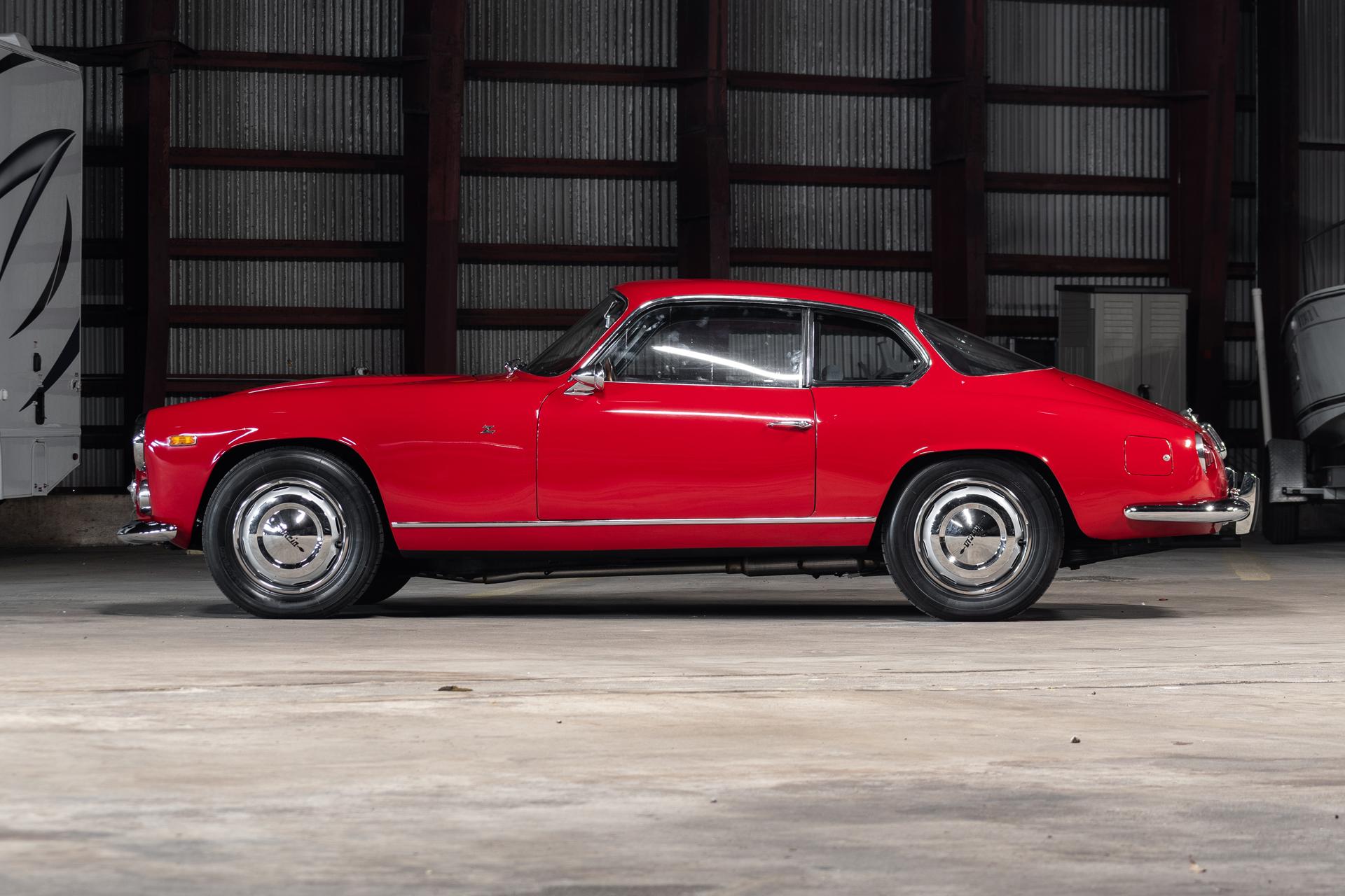 The aluminum bodywork was reportedly finished in yellow from the factory and underwent a color change to its current shade of red while under previous ownership. Closeups of the finish, trim, lenses, and glass etchings are provided in the photo gallery below, along with images of various blemishes. The front and rear bumpers were re-chromed and reinstalled following the selling dealer’s acquisition. Zagato body number 85 is shown stamped inside the front grille, as well as various other trim pieces, in the gallery.