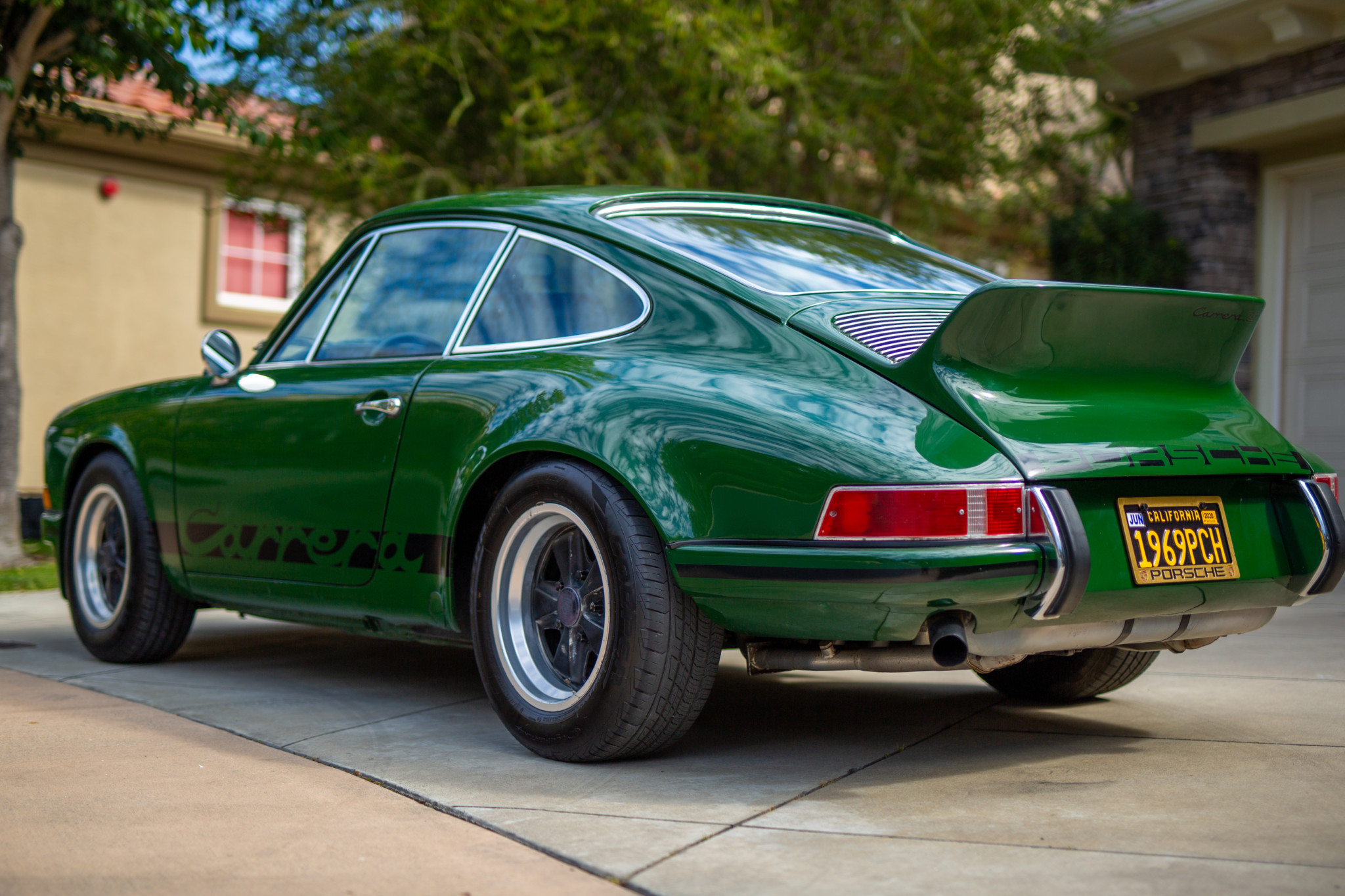 The 15” Fuchs feature black centers and measure 7” wide up front and 8” wide out back. The Cooper CS5 Ultra Touring tires measure 195/65 in the front and 215/60 in the rear. Per the seller, the suspension and braking systems from a later 911 Carrera have been installed, and Bilstein shocks have been fitted.
