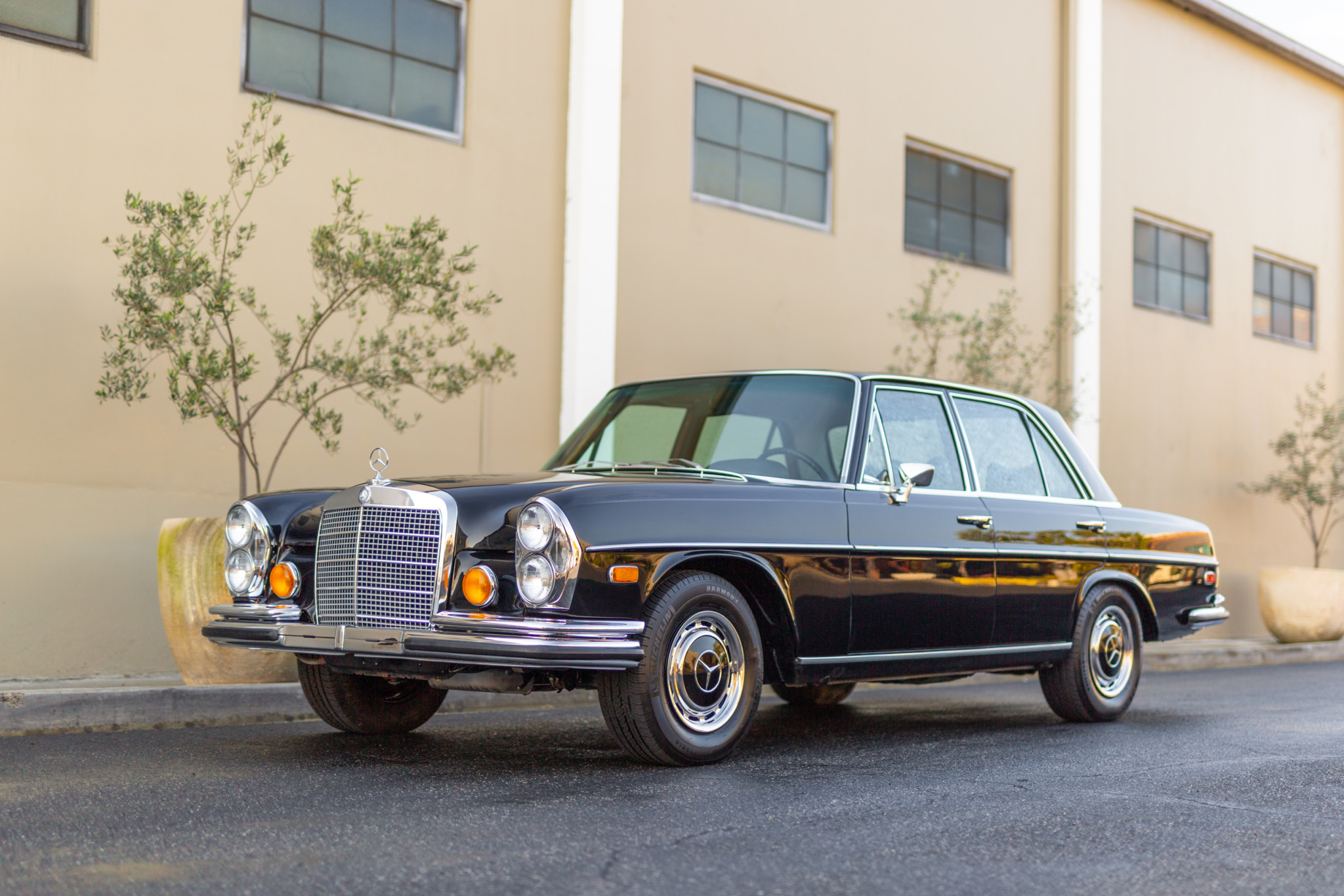 Factory 14″ wheels wear 215/70 Michelin Harmony tires and Mercedes-Benz hubcaps with body-color centers. Receipts from MBZ Parts show that some bushings and the sway-bar end links were replaced in 2013.