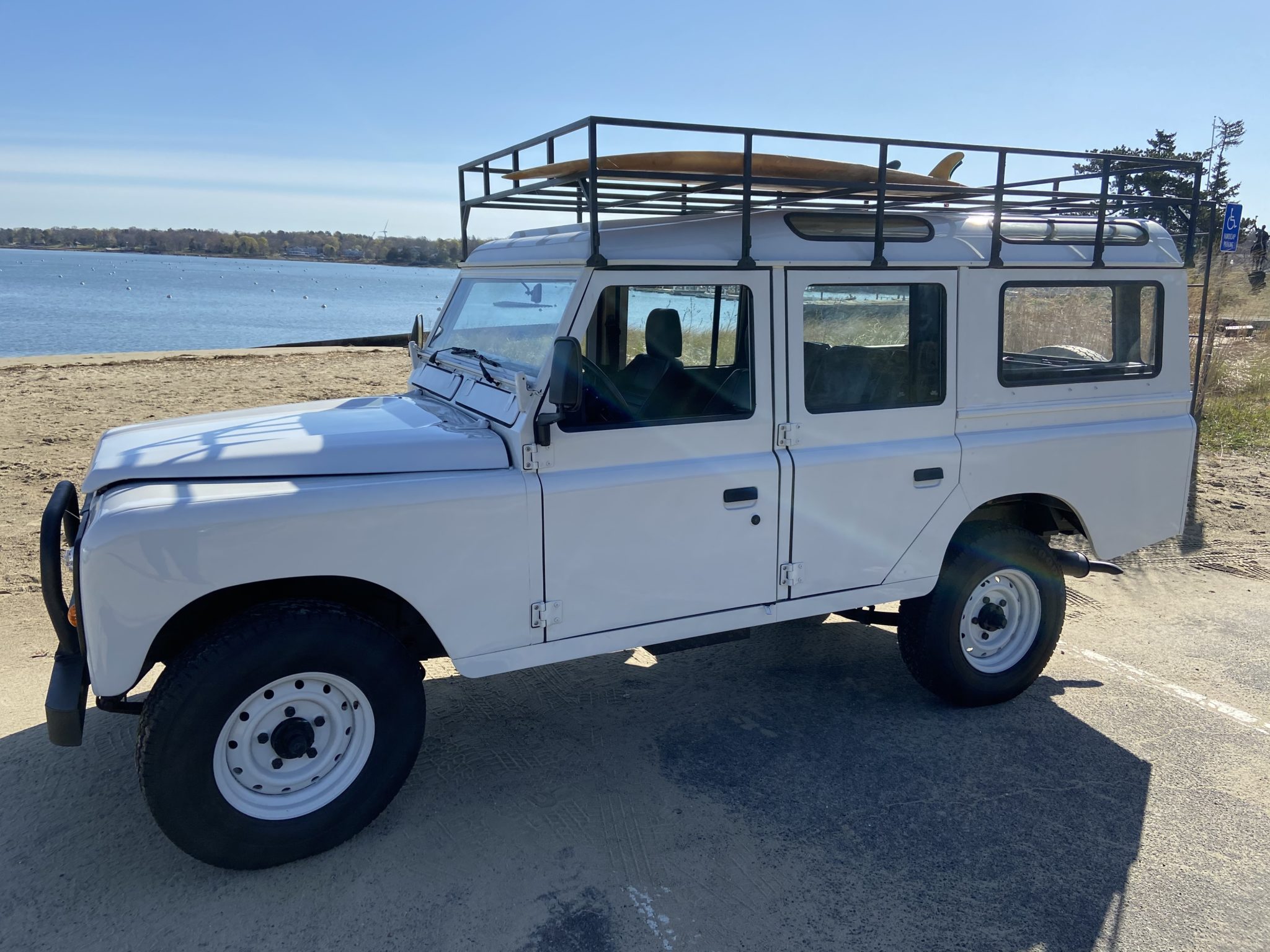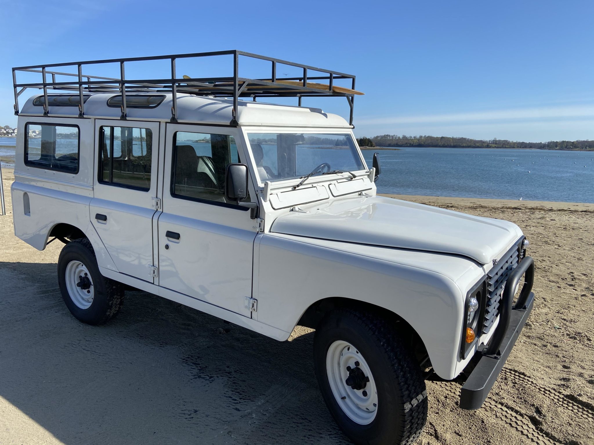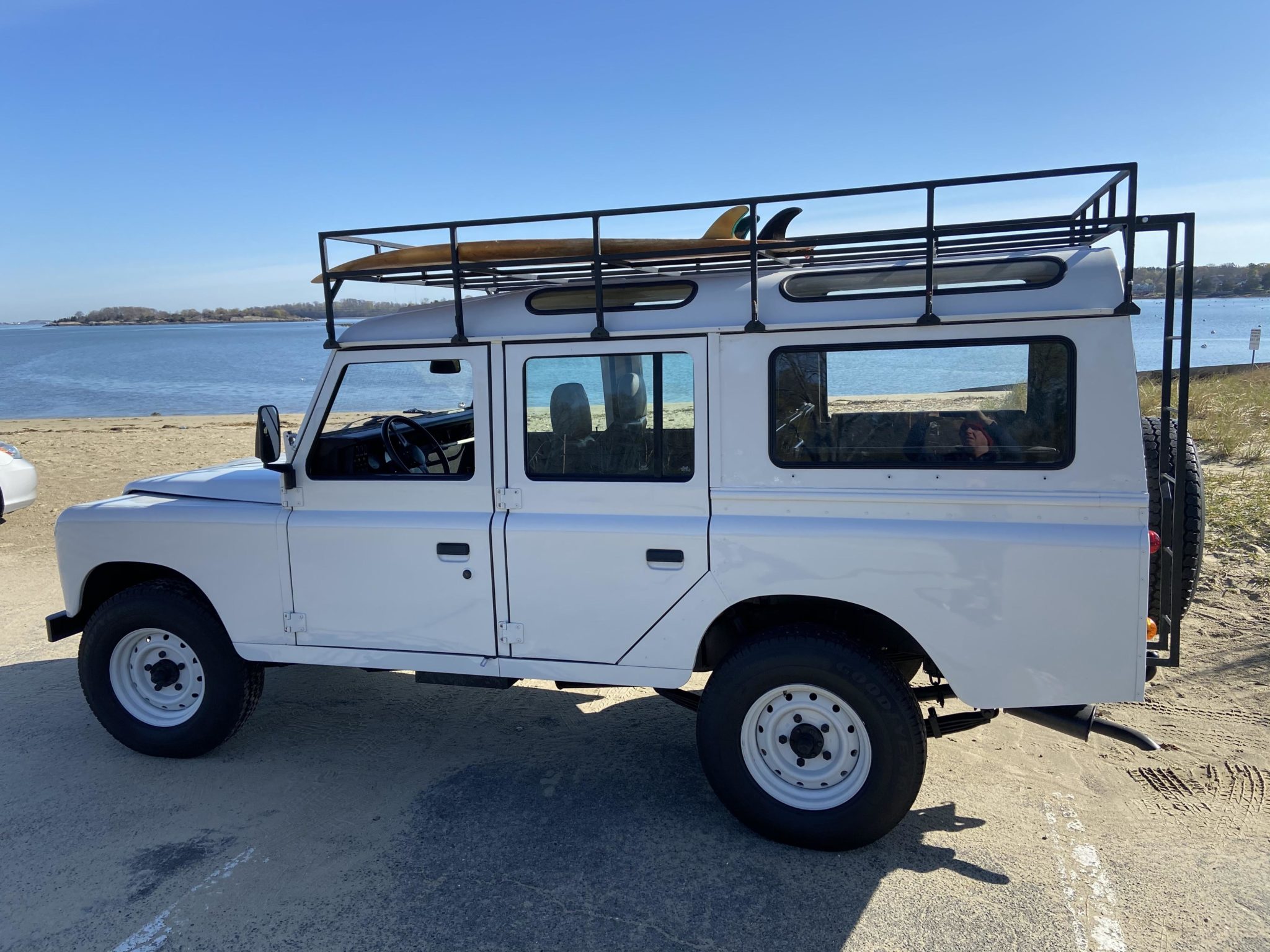 Accessories include a front brush guard and a roof rack with an integrated ladder. New 16″ white steel wheels and Goodyear tires are said to have been fitted during the 2019 work, and a spare is mounted to a swing-out rear carrier.