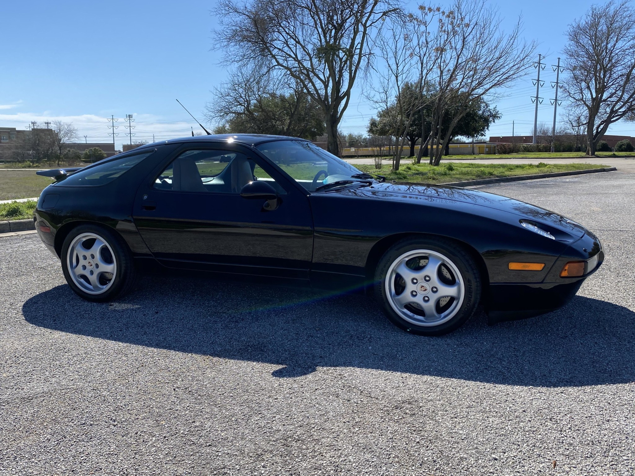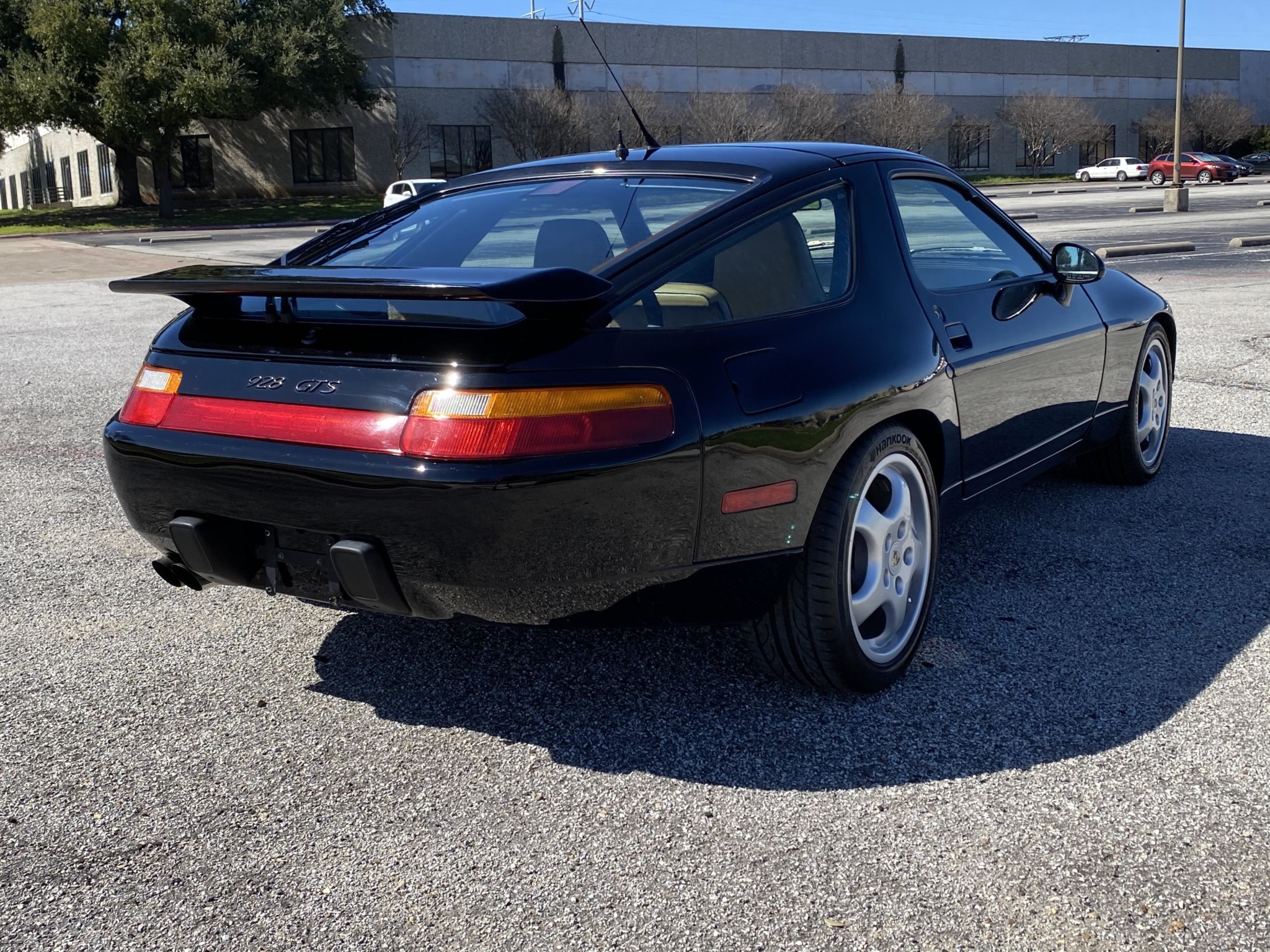 Painted 17″ Cup wheels wear colored-crest center caps and Hankook Ventus V12 Evo 2 tires. Braking is handled by black calipers with white Porsche scripts and cross-drilled rotors. A June 2019 service at Norwood Auto Italia of Carrollton, Texas included paint correction and refinishing three of the wheels as well as installation of a new wheel sensor and trim pieces.