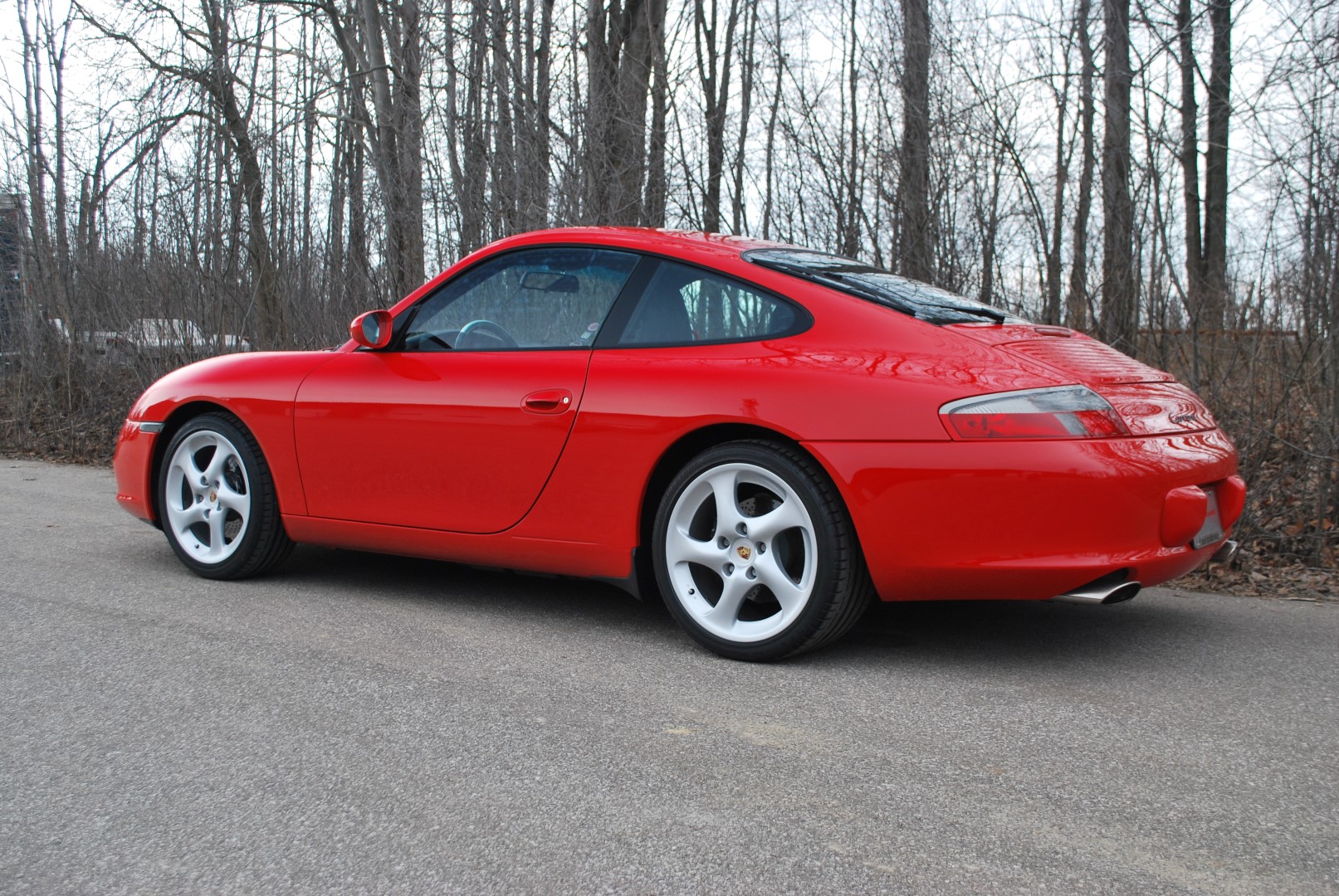 Factory 18″ Turbo Twist wheels wear colored Porsche crest center caps and are wrapped in Bridgestone Potenza S-04 tires that show date codes from 2014. Cross-drilled brake rotors are fitted at each corner, and the pads were replaced in 2015.