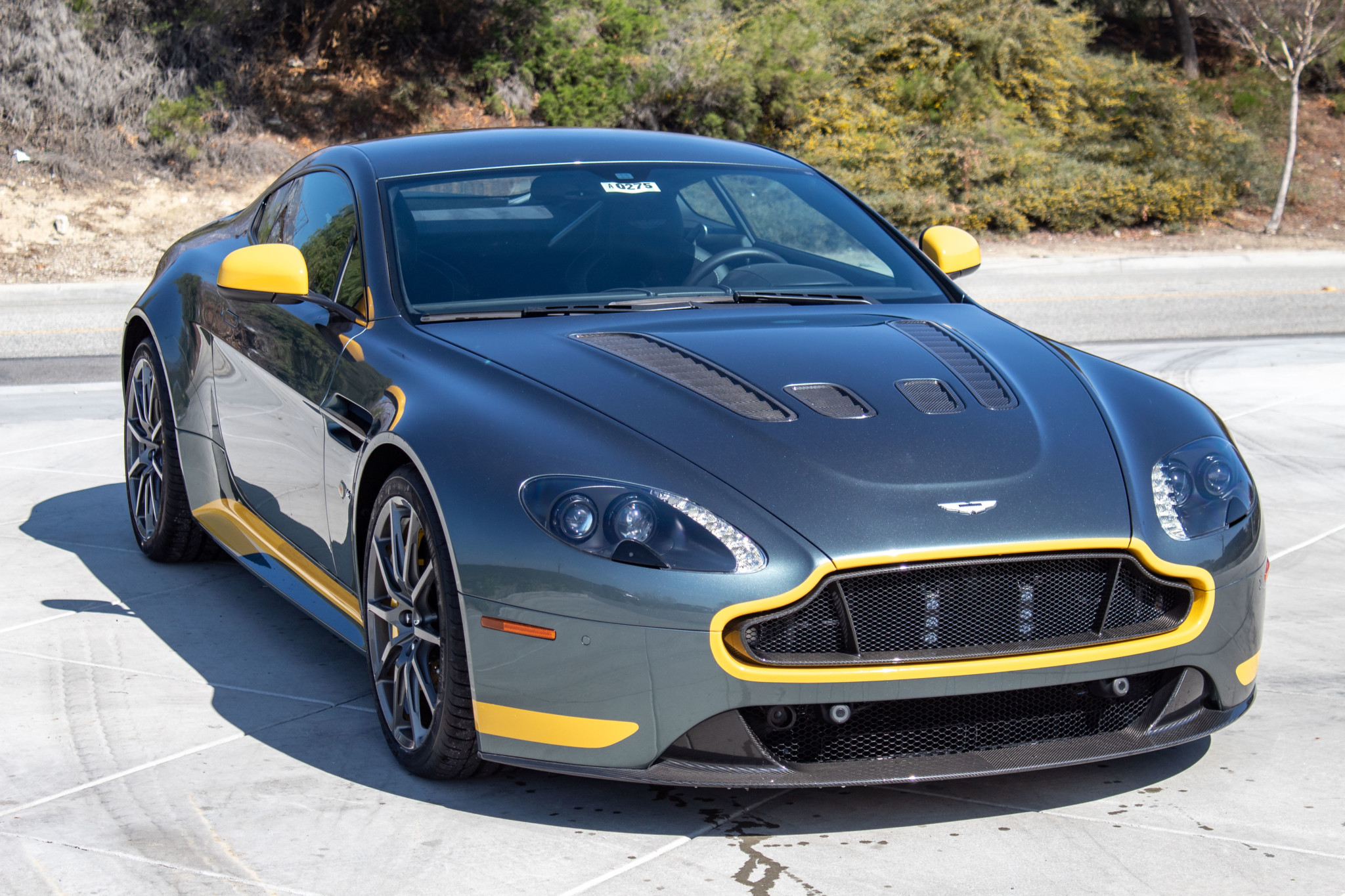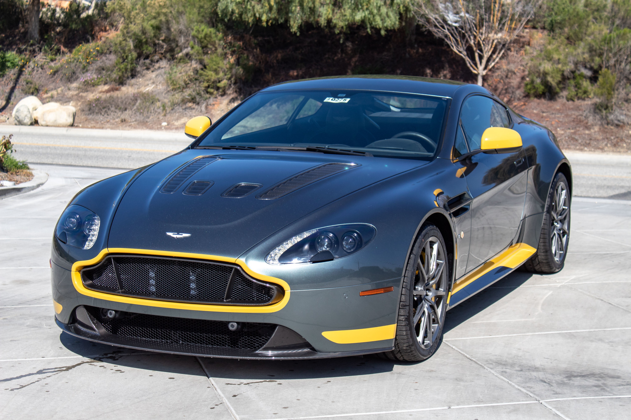 Factory 19″ wheels are mounted with Pirelli P Zero tires. Cross-drilled carbon-ceramic brake rotors were standard on the V12 S and are clamped by optional yellow-painted calipers.