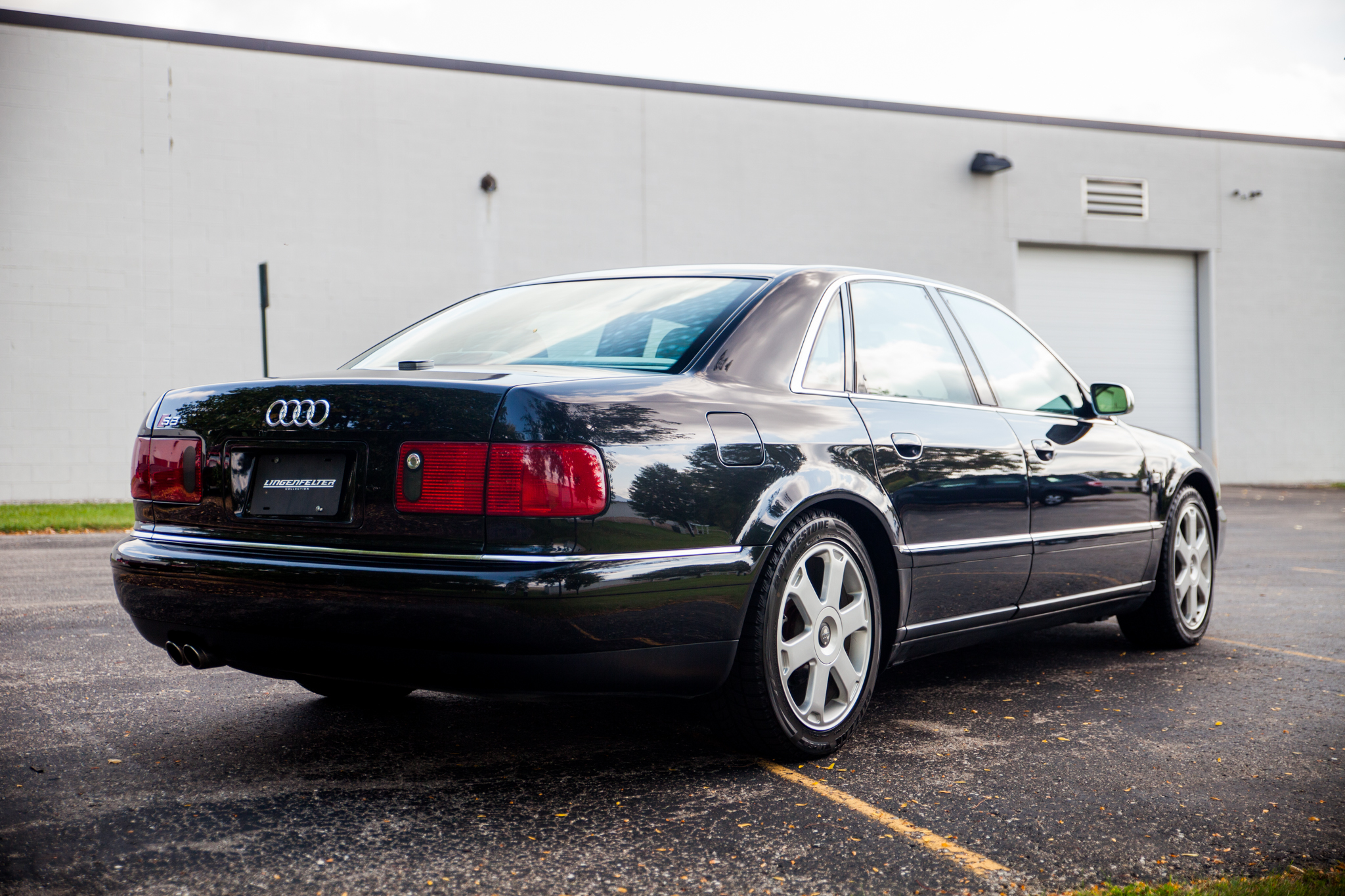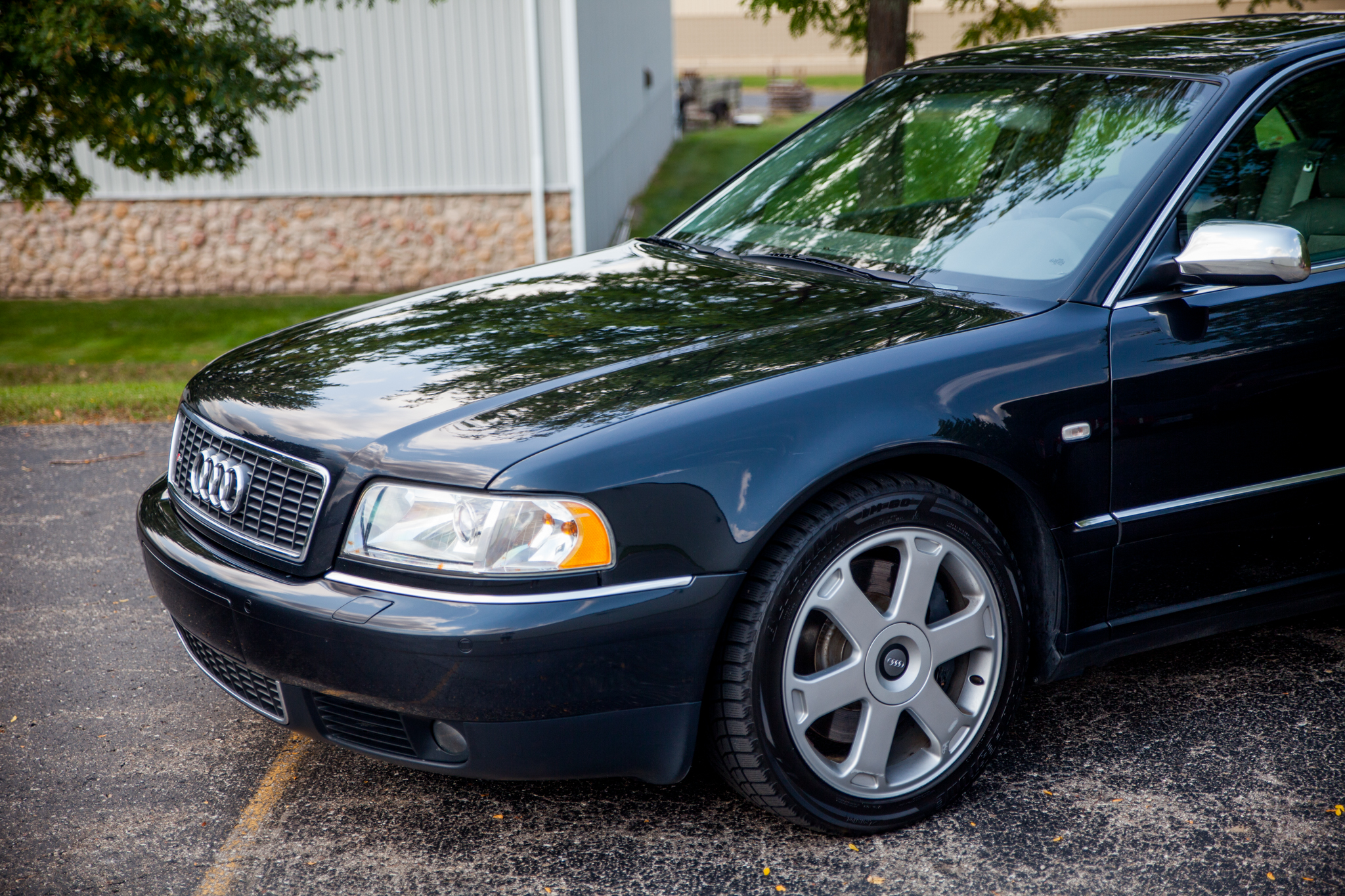 The aluminum monocoque rides on a 113.5″ wheelbase, and factory 18″ Avus alloy wheels have been retained. Bridgestone Blizzak tires are fitted, and a provided 2017 service invoice documents replacement of the brake rotors and pads at each corner.
