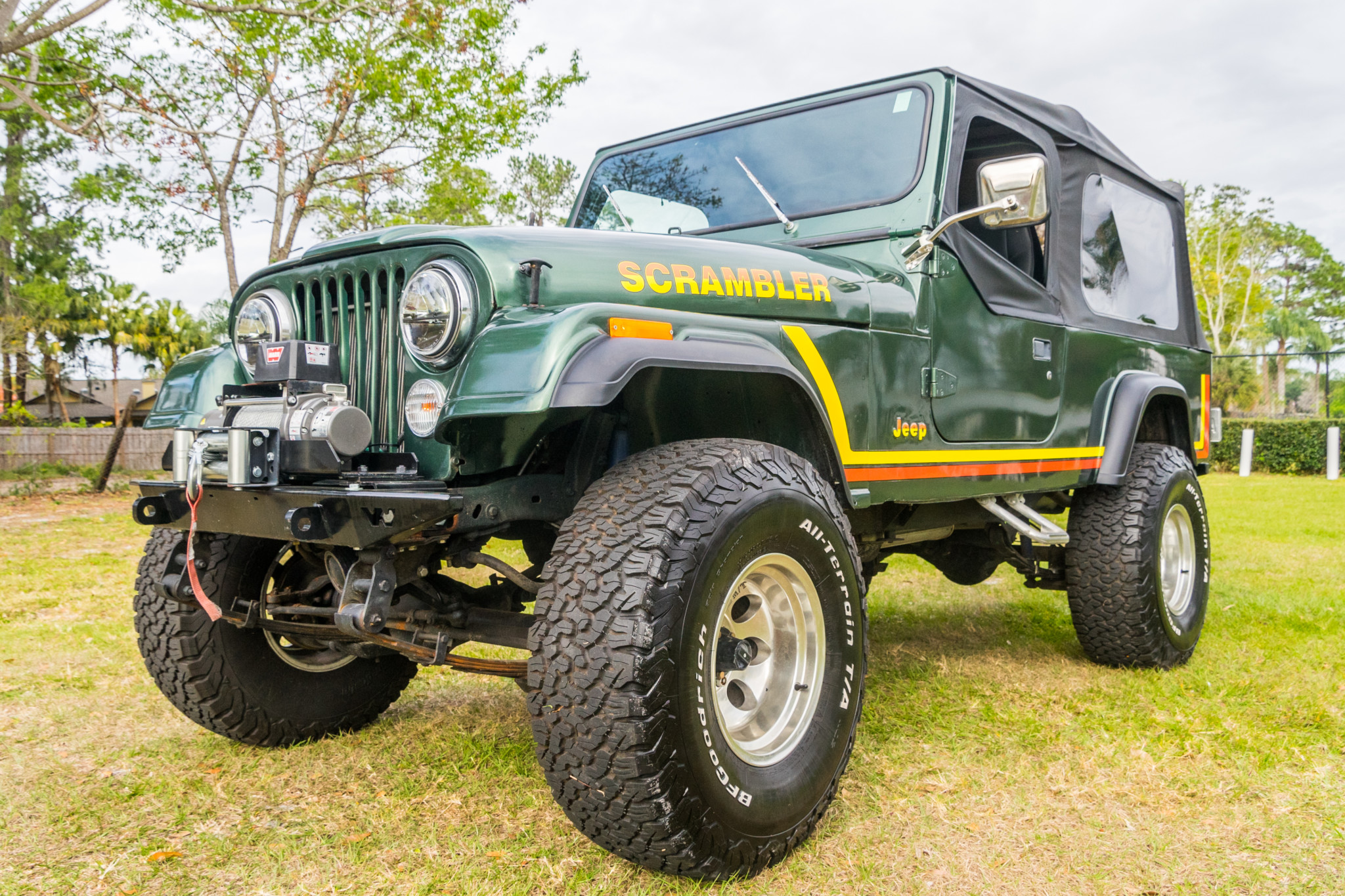 Additional features include LED headlights, a Warn M8000 winch mounted to the front bumper, and a Bestop full soft top. A bikini top is included in the sale. Mickey Thompson 15″ aluminum wheels are wrapped with 35×12.5″ BFGoodrich All-Terrain T/A KO2 tires.