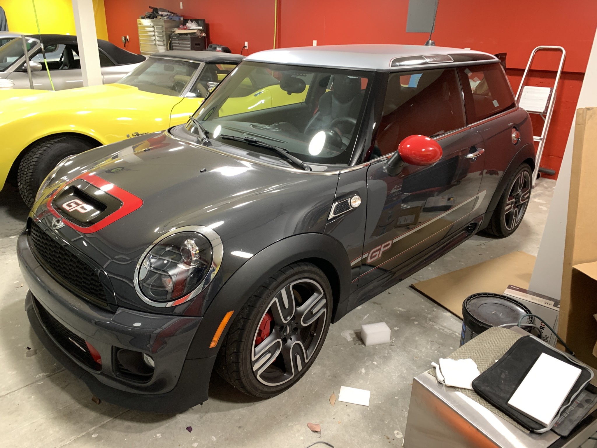 Factory 17″ x 7.5″ aluminum wheels are wrapped in Kumho Ecsta tires that measure 215/40 at all four corners. Brembo 13″ front disc brakes with six-piston calipers came standard on the GP, as did adjustable coilovers with stiffer spring rates compared to the standard Mini Cooper S.