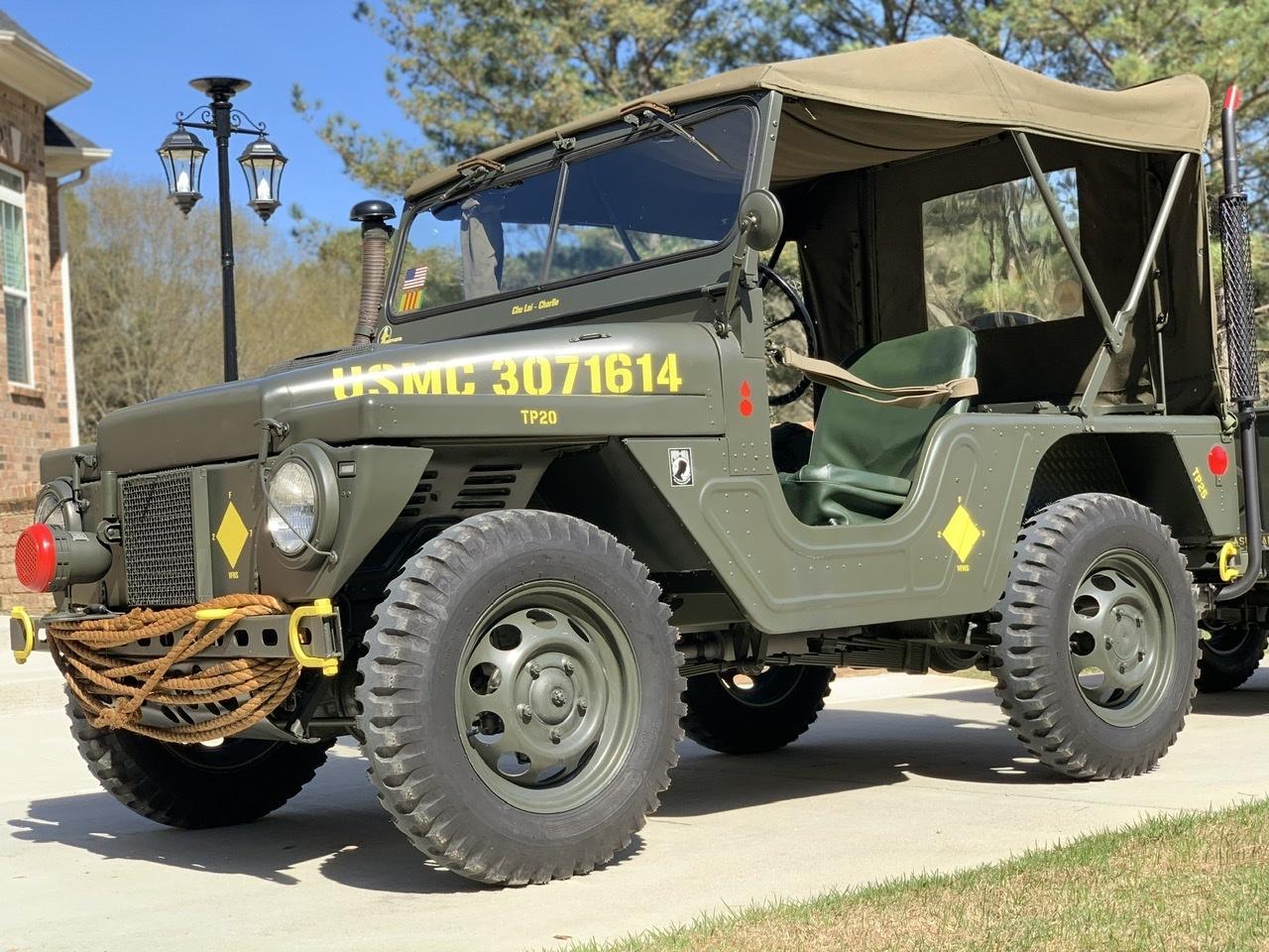 The vehicle features headlights, taillights, and turn signals, although the seller notes that the taillights and turn signals occasionally do not work. 15″ wheels are mounted with Denman NDT Military Design tires measuring 6.00-15, and A1 models are equipped with a spare-tire mount shared with the M38A1 and not used on the standard M422.