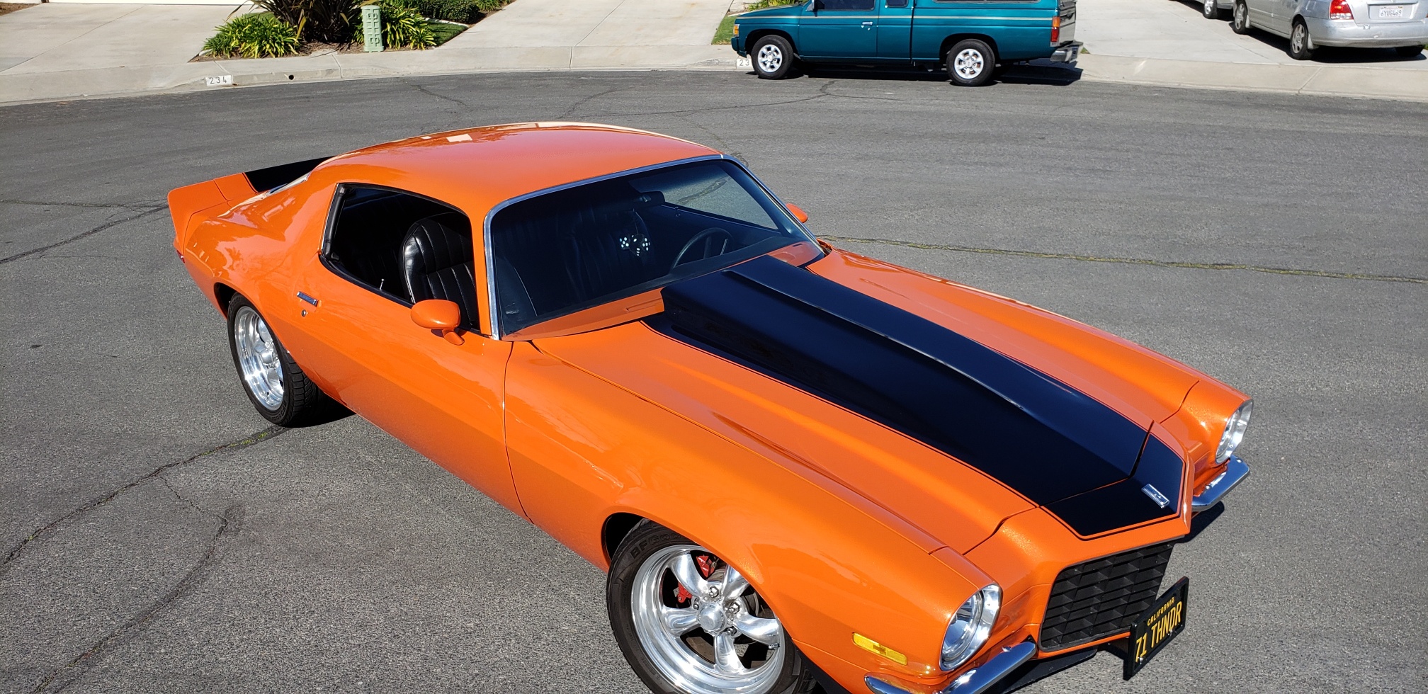 Staggered-width 17″ American Racing Torq Thrust wheels feature a polished finish and wear BFGoodrich g-Force Sport tires measuring 245/40 in the front and 275/40 at the rear. Disc brakes are fitted at all four corners.