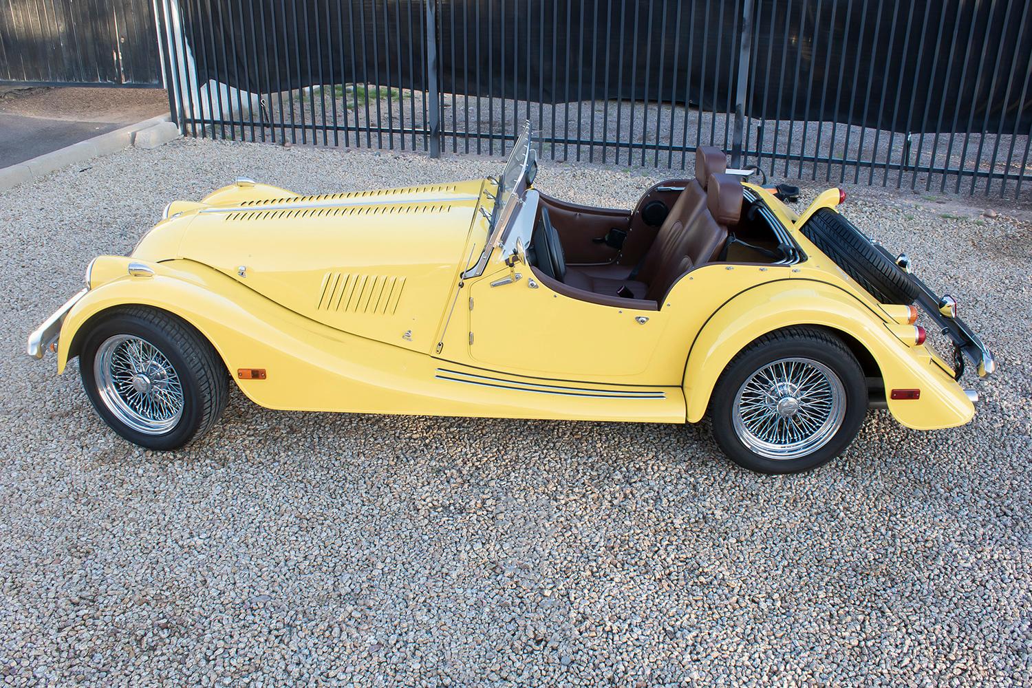 Chrome 16” knock-off wire wheels wear Michelin Pilot Sport tires. Braking is handled by front discs and rear drums.