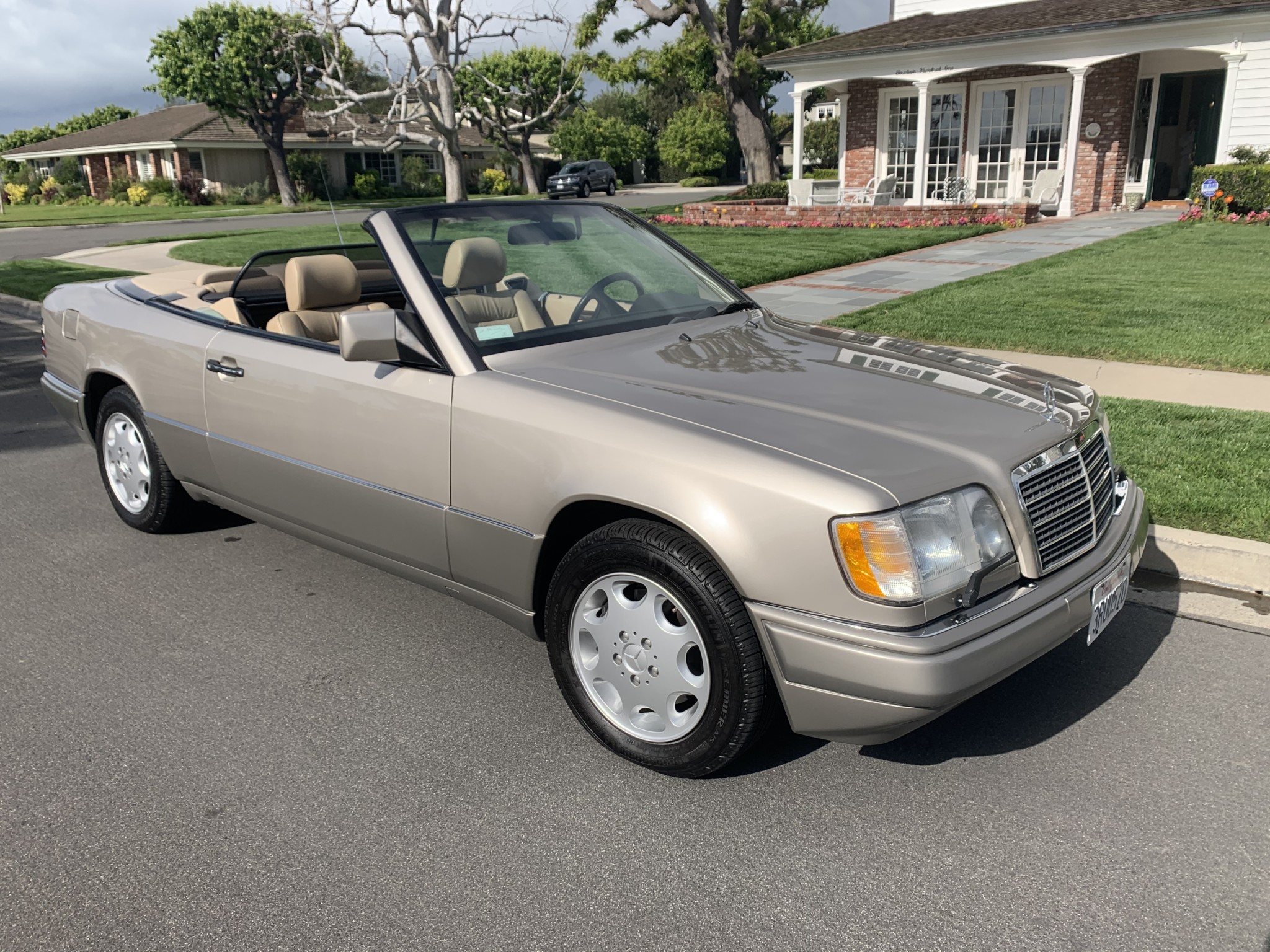 Factory 15″ eight-hole wheels wear Michelin Premier A/S tires showing 2015 date codes. All 1995 E320 cabriolets were equipped with four-wheel power-assisted disc brakes, for which the fluid in this car was reportedly changed within the past year.