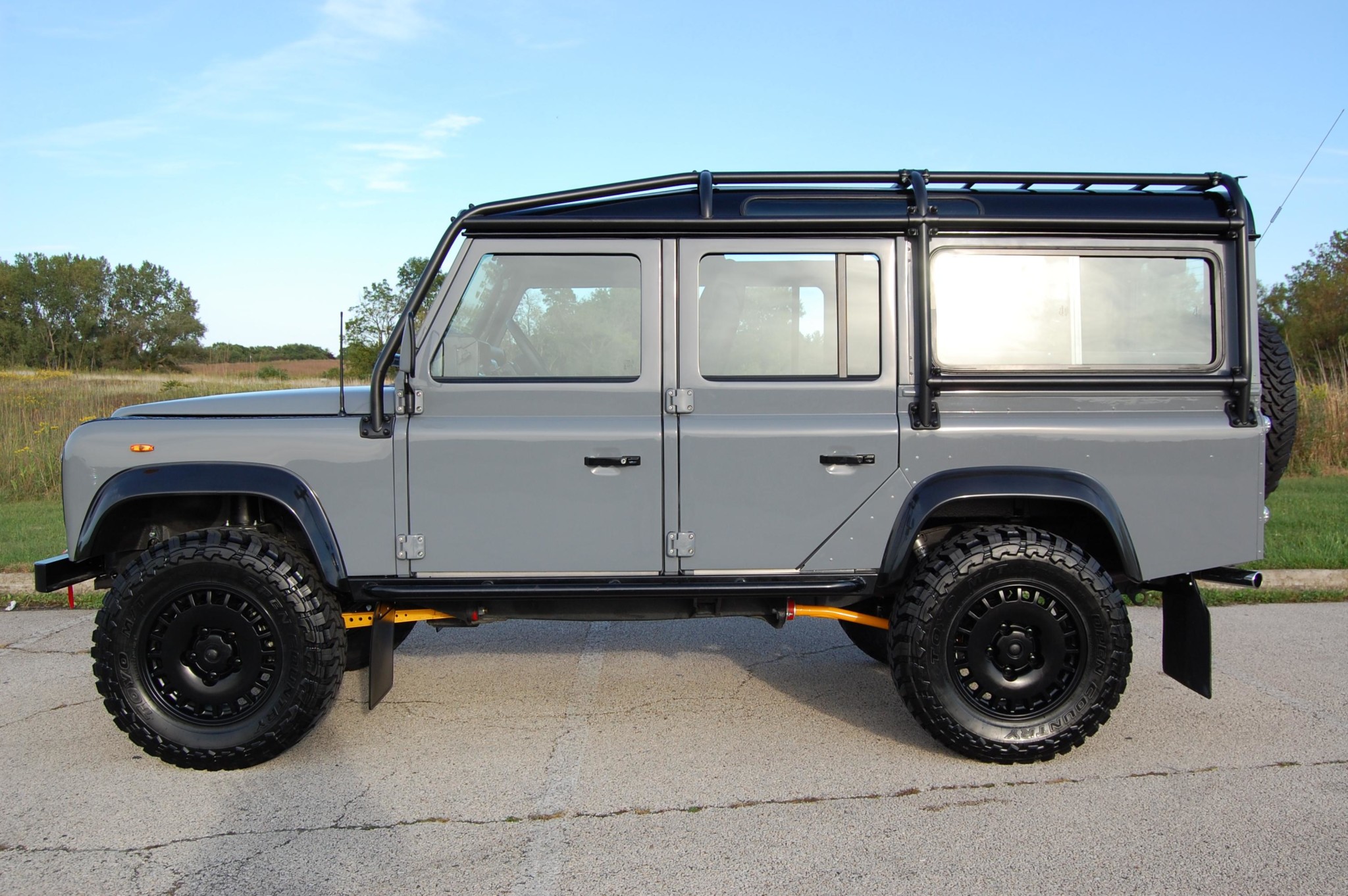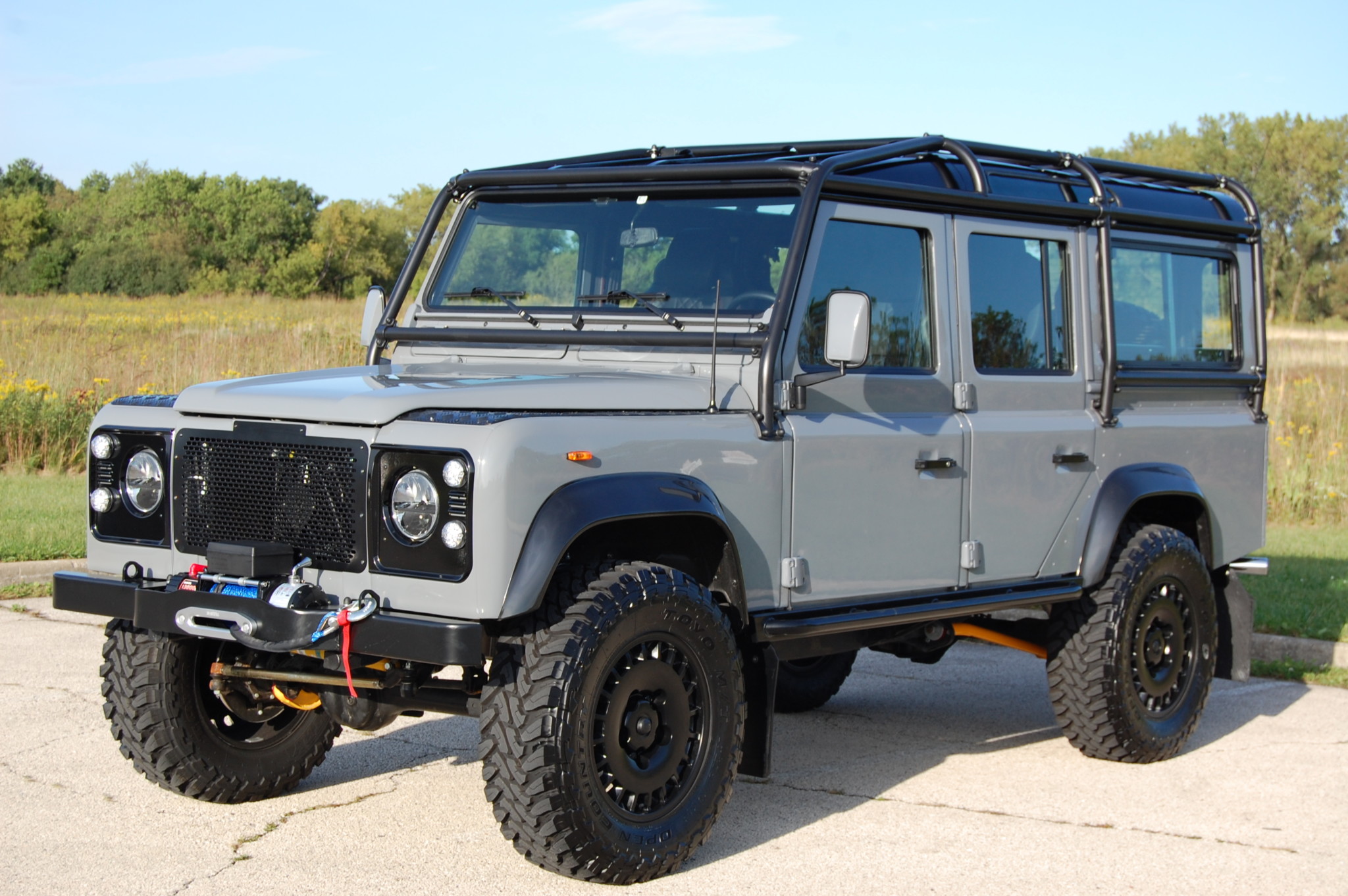 Black 18″ alloy wheels are mounted with 275/70 Toyo M/T Open Country tires. Suspension modifications consist of Fox shocks, new coil springs at both axles, Terrafirma front and rear radius arms, Panhard rods, and a Bilstein steering damper. Disc brakes can be found at all four corners.