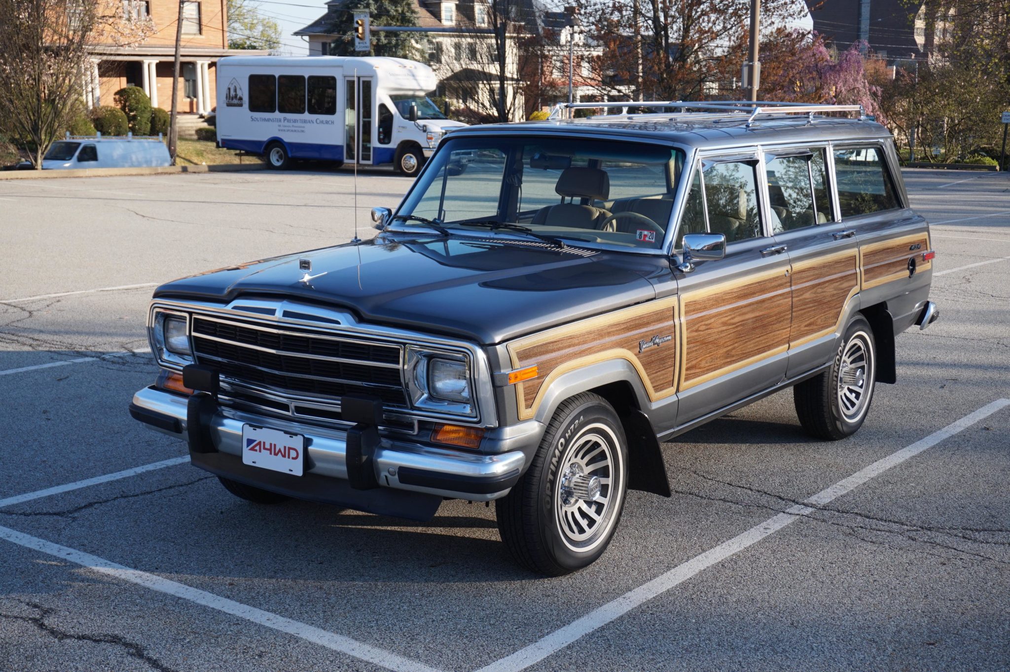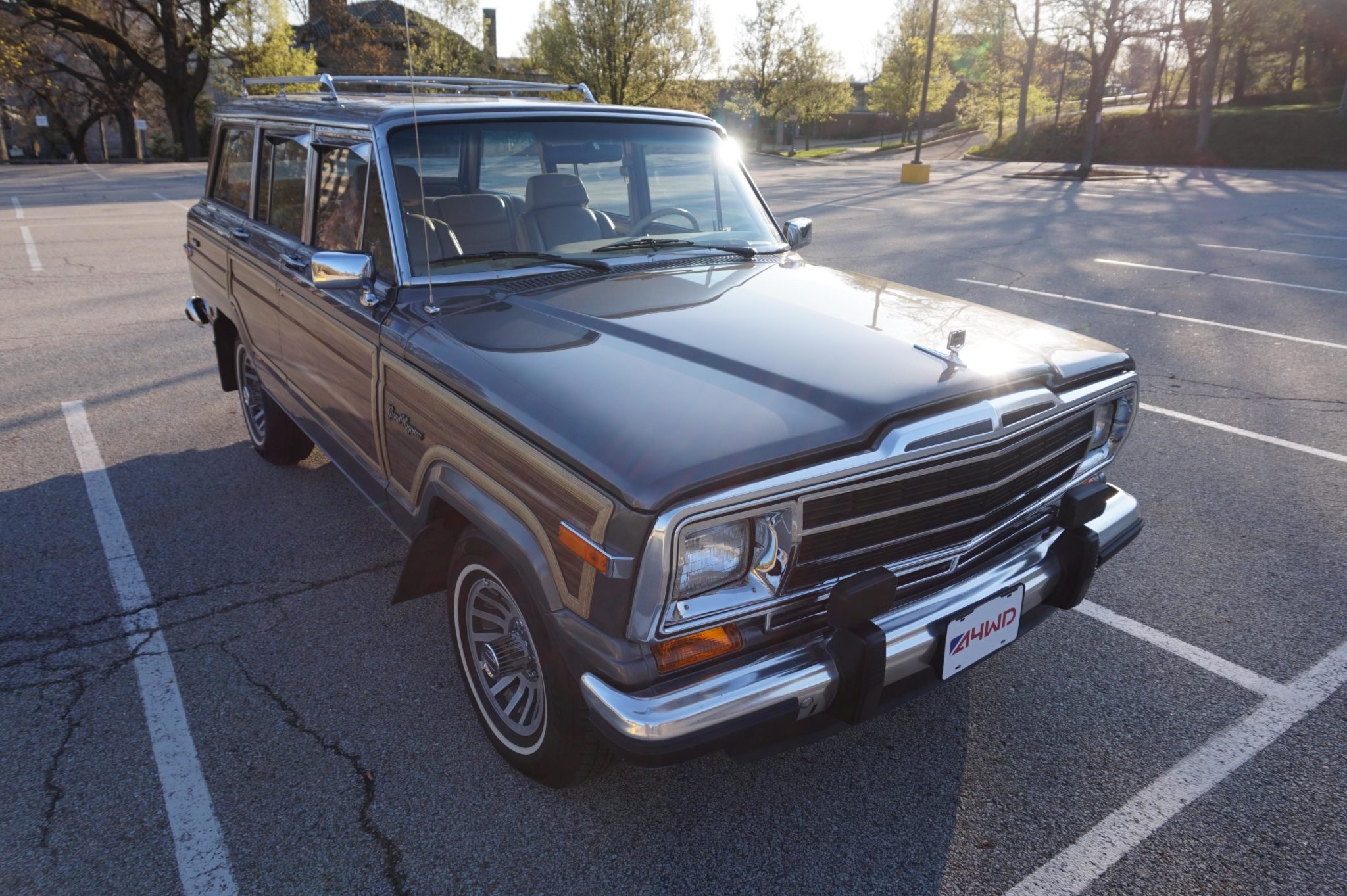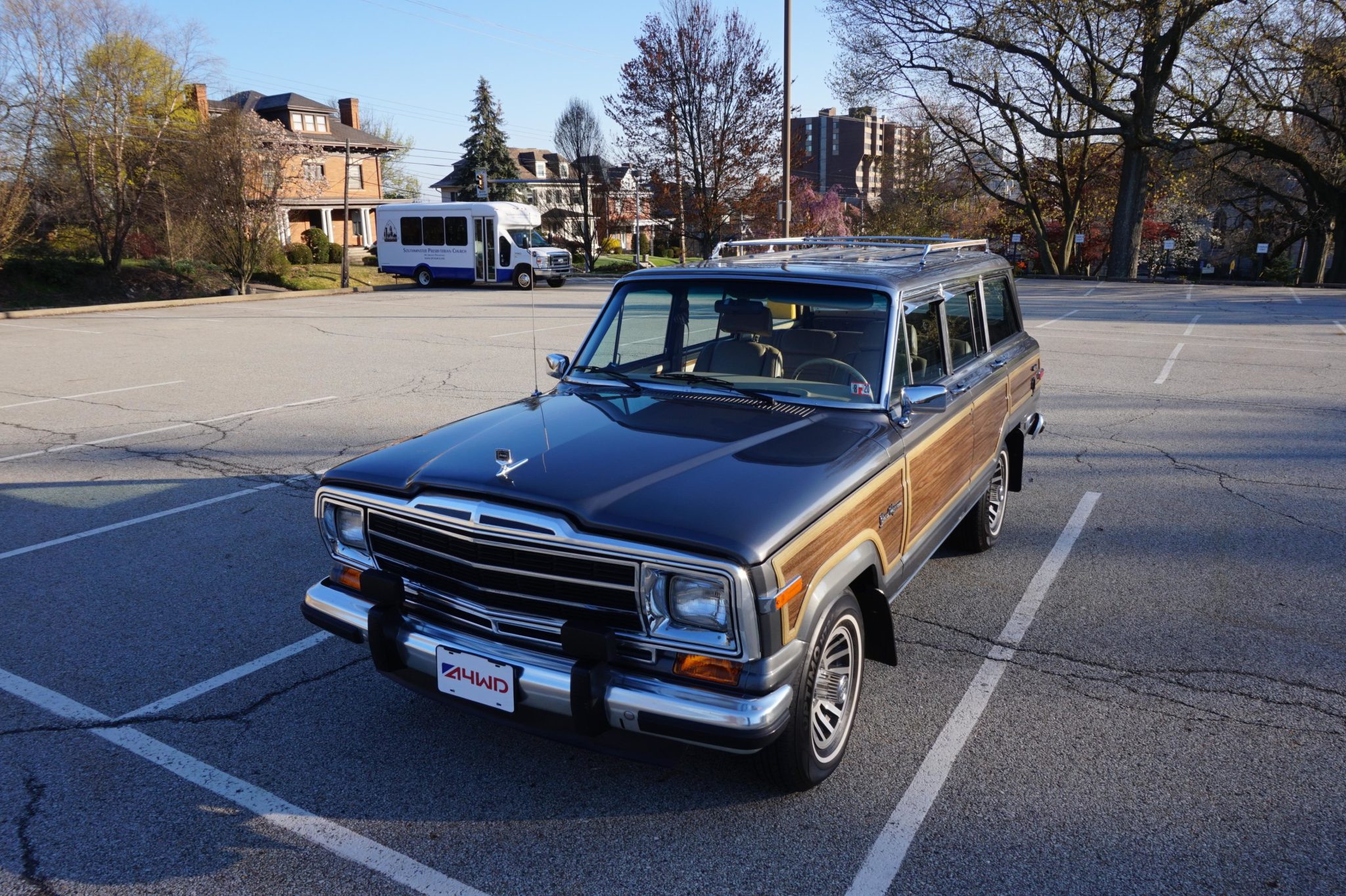 The recently refurbished factory driving lights have the correct “Jeep” plastic covers and are shown illuminated in the photo gallery below. The windshield has been replaced, and the Jeep retains its factory mud flaps. The 15″ aluminum wheels wear Hankook Optimo whitewall tires with 2012 date codes.