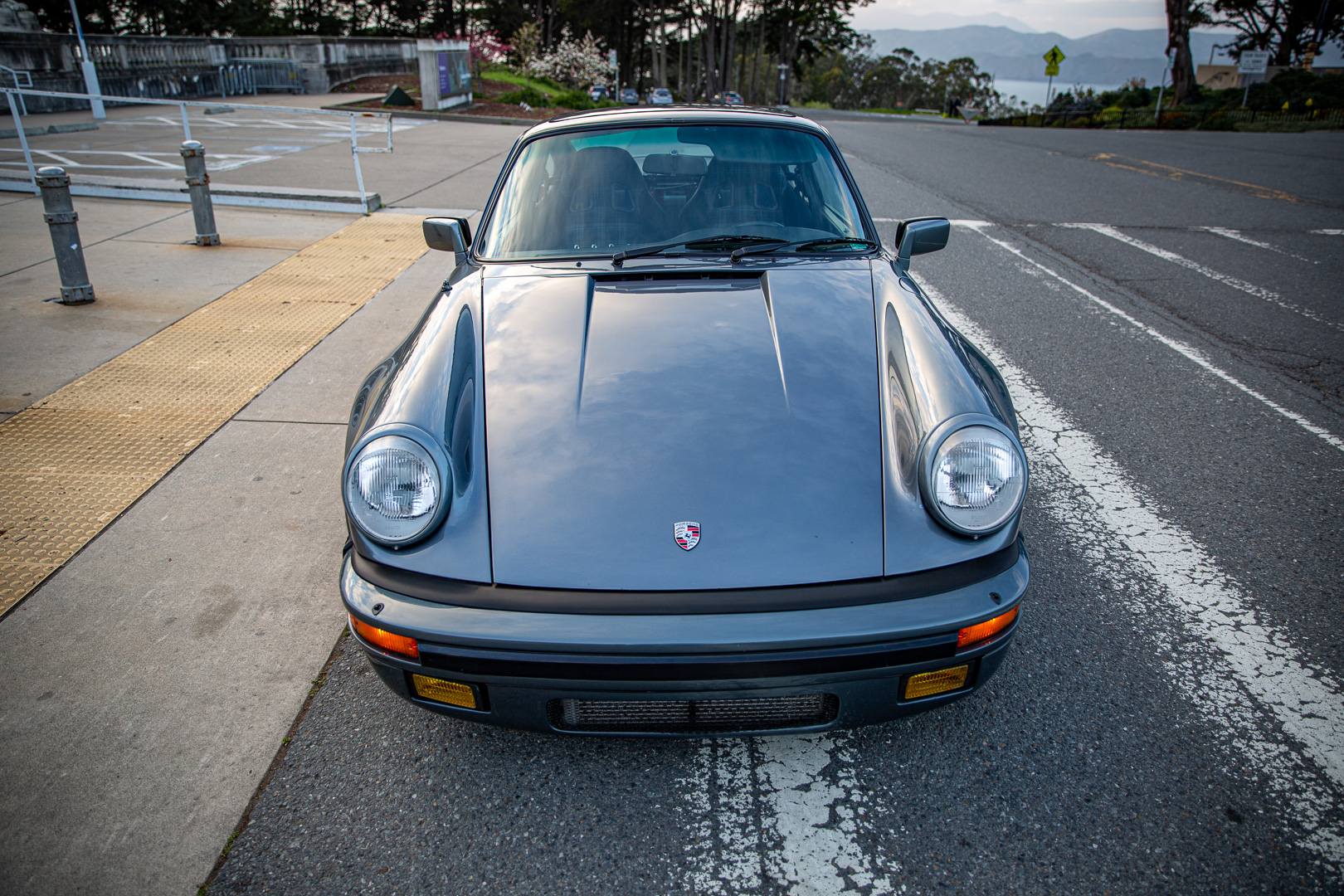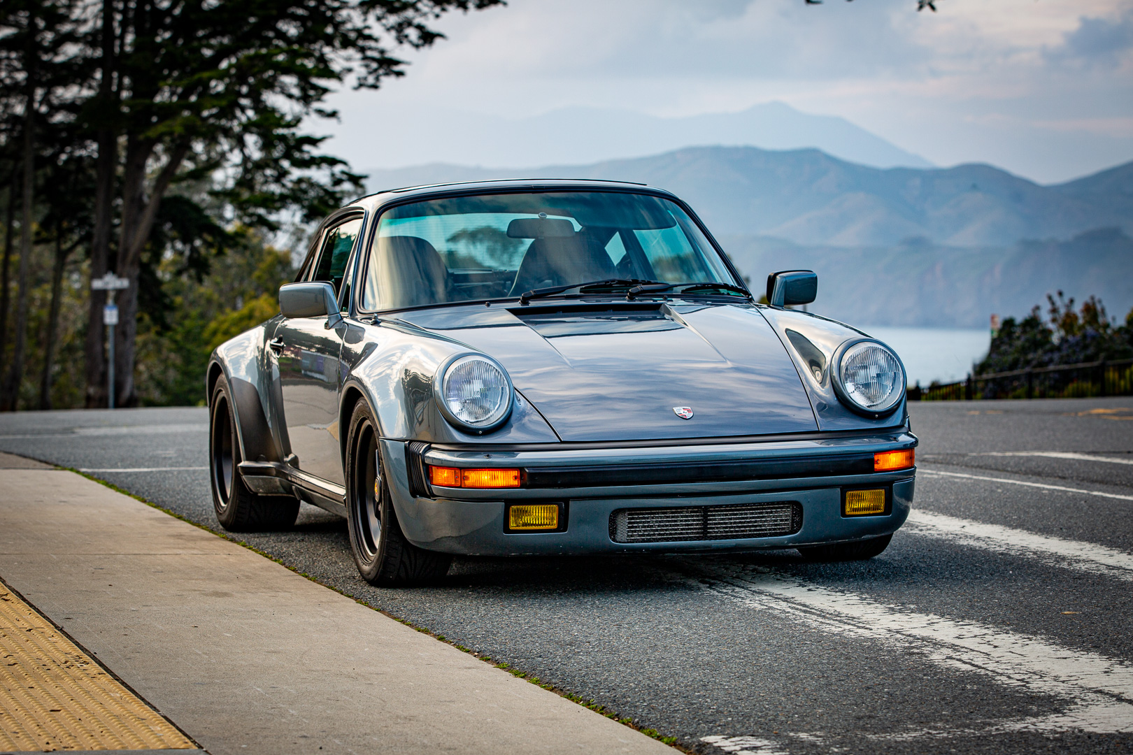 Black 16″ Fuchs-style wheels wear 235/50 front and 245/45 rear Toyo Proxes T1R tires. Factory 930 Turbo brakes clamp cross-drilled rotors and were standard equipment with the M491 option. The suspension reportedly has been modified with the following components: