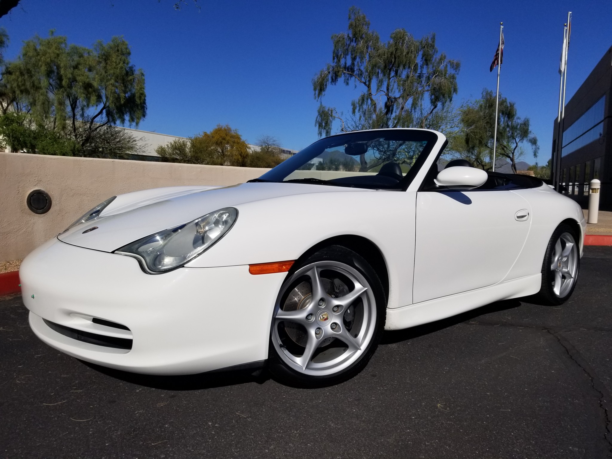 Factory 18″ Carrera five-spoke wheels show curb rash and are fitted with Pirelli P Zero All Season Plus tires up front and Pirelli P Zero Rosso tires at the rear. A brake service in February 2020 consisted of replacing the front and rear pads and sensors and truing the rotors.