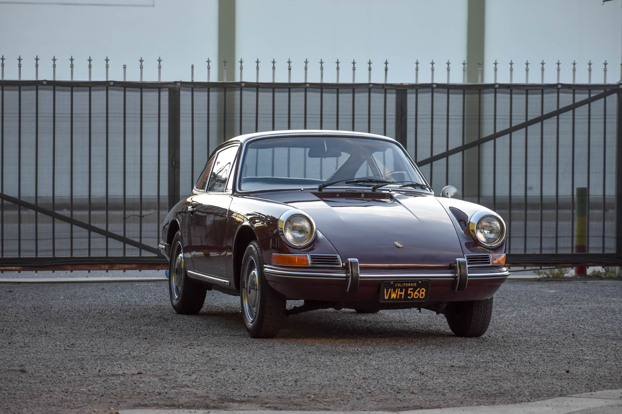 Chrome 15″ steel wheels wear hubcaps with Porsche crests and are mounted with 165-section Metric Radial tires all around, apart from the driver-side front wheel, which wears a Goodyear Corsa GT tire. The car is equipped with four-wheel disc brakes, and retains a pair of six-digit California black plates.