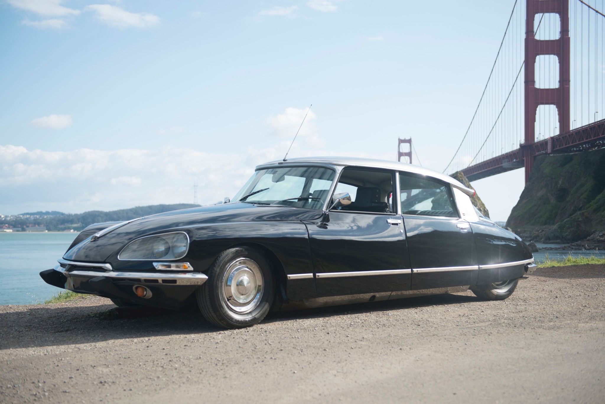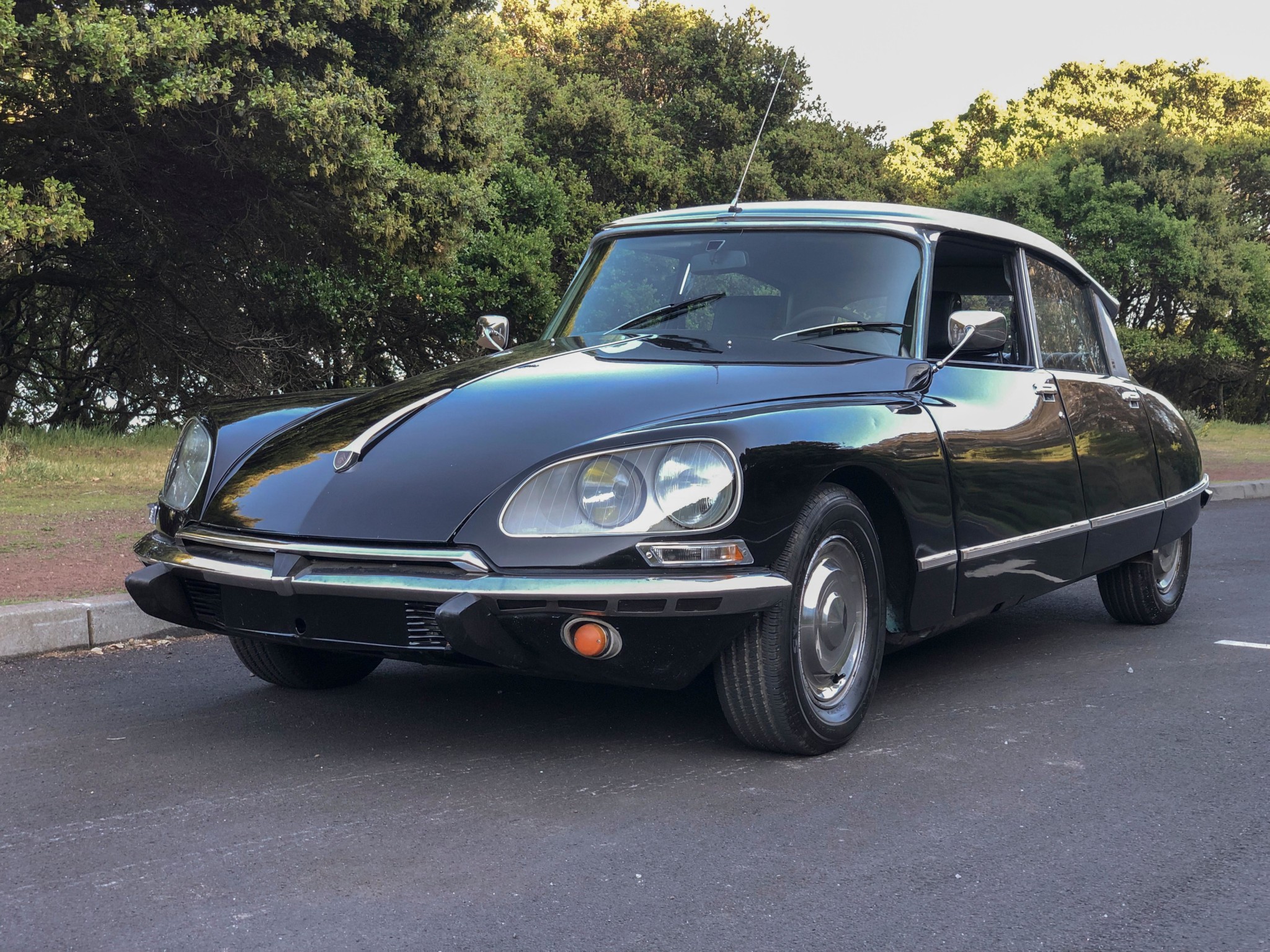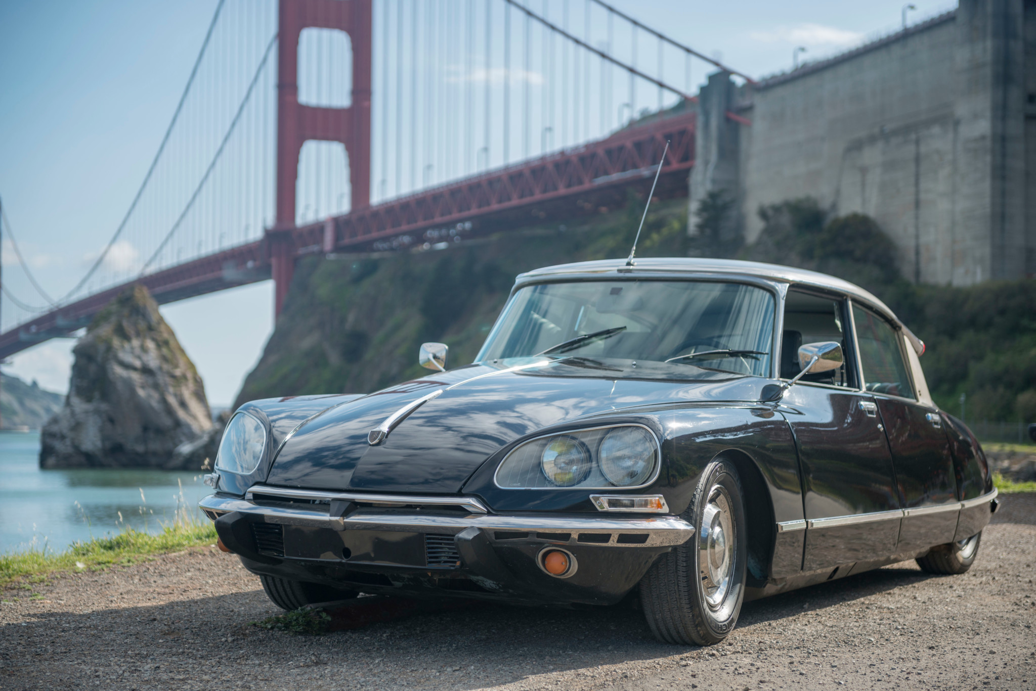 Steel wheels wear polished single-piece covers and older Michelin Symmetry tires. Photos illustrating the hydropneumatic suspension at various heights are provided in the gallery below.