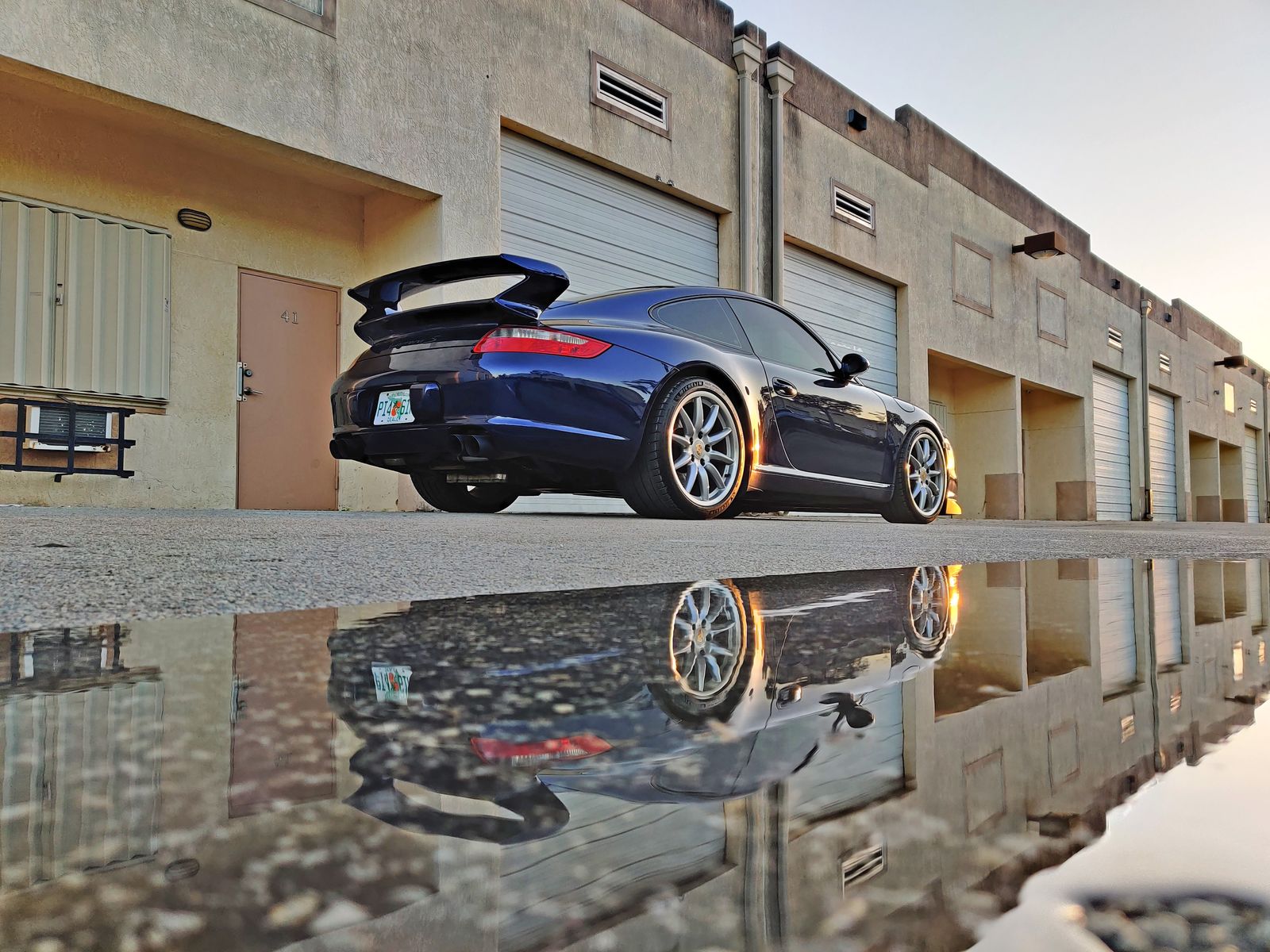 The ride height has been lowered from stock over factory 19″ Carrera Sport wheels with colored center crests and Michelin Pilot Sport 4S tires from 2017. Removed stock suspension parts are included in the sale and pictured in the gallery below.
