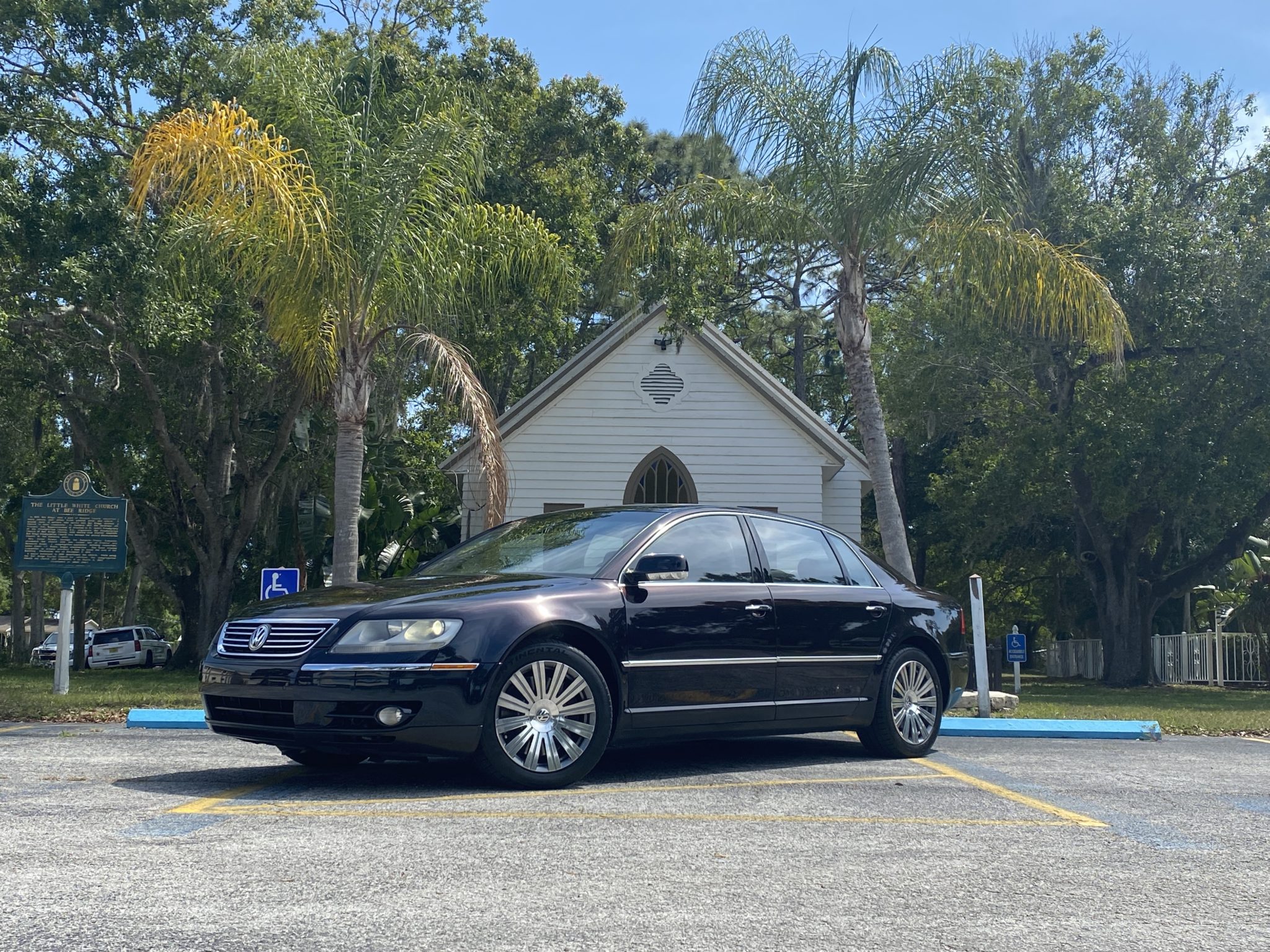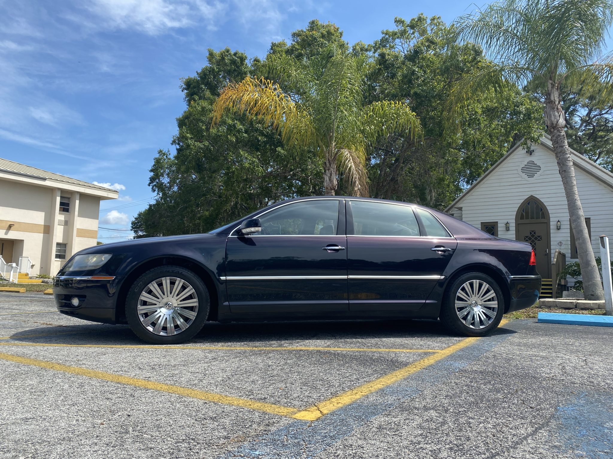 Factory 18″ 12-spoke wheels wear a set of 255/45 Continental Extreme Contact tires. A spare set of stock 18″ seven-spoke alloys are included in the sale. Standard features included 4Motion all-wheel drive, auto-leveling air suspension with electronic damping control, electronic brake assist, and engine braking control.