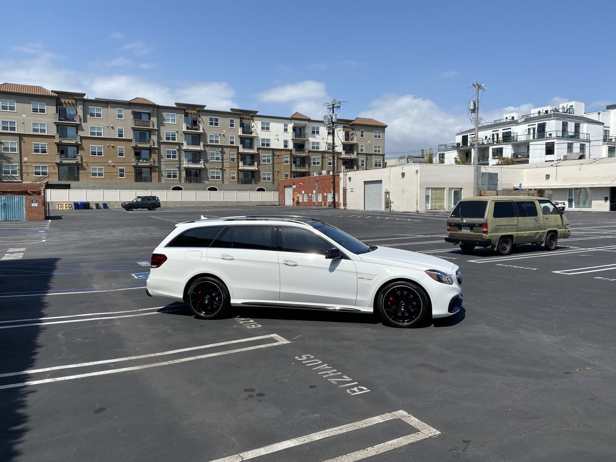 Factory black 19″ AMG wheels wear Pirelli PZero tires that were installed under current ownership and measure 255/35 up front and 285/30 out back. Driver aids include the Parking Package with a surround-view camera and Parktronic sensors, Active blind spot assistance, active lane keeping assistance, Distronic Plus cruise control, and more. The brake system features red-finished calipers with cross-drilled and slotted rotors, and the seller states that rear rotors were recently replaced and the front and rear pads were changed to RADO low-dust comonents.