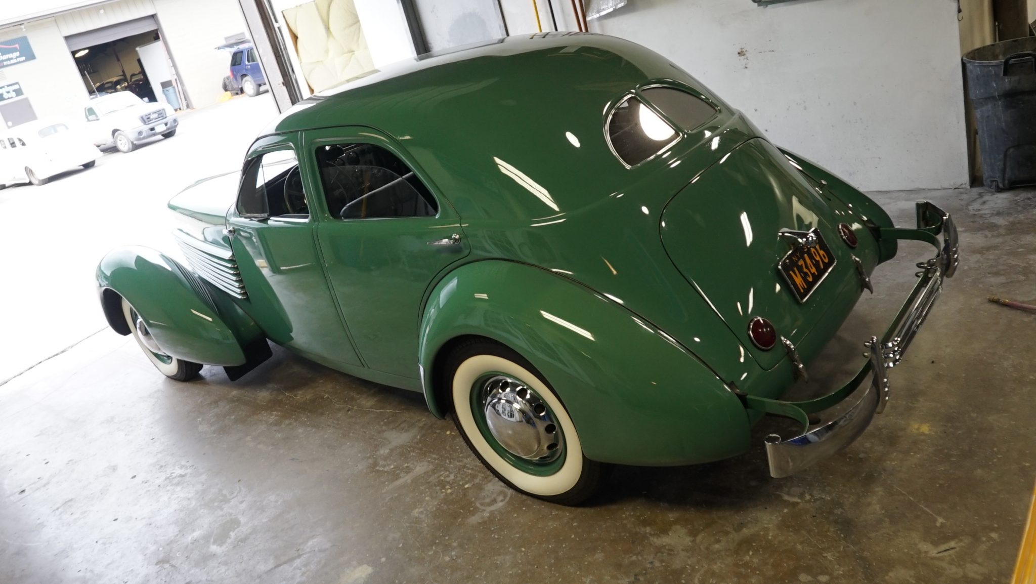 Body-color 16×4.5″ steel wheels wear chrome wheel covers and were mounted with new Coker whitewall radials within the last few years. Braking is from hydraulic Lockheed drums all around. The wheel cylinders were re-sleeved by White Post Restorations in 2016 and reinstalled along with new brake lines. New parking brake cables were also fitted during the seller’s ownership.