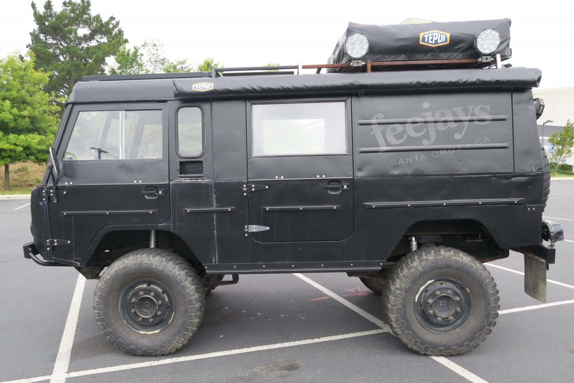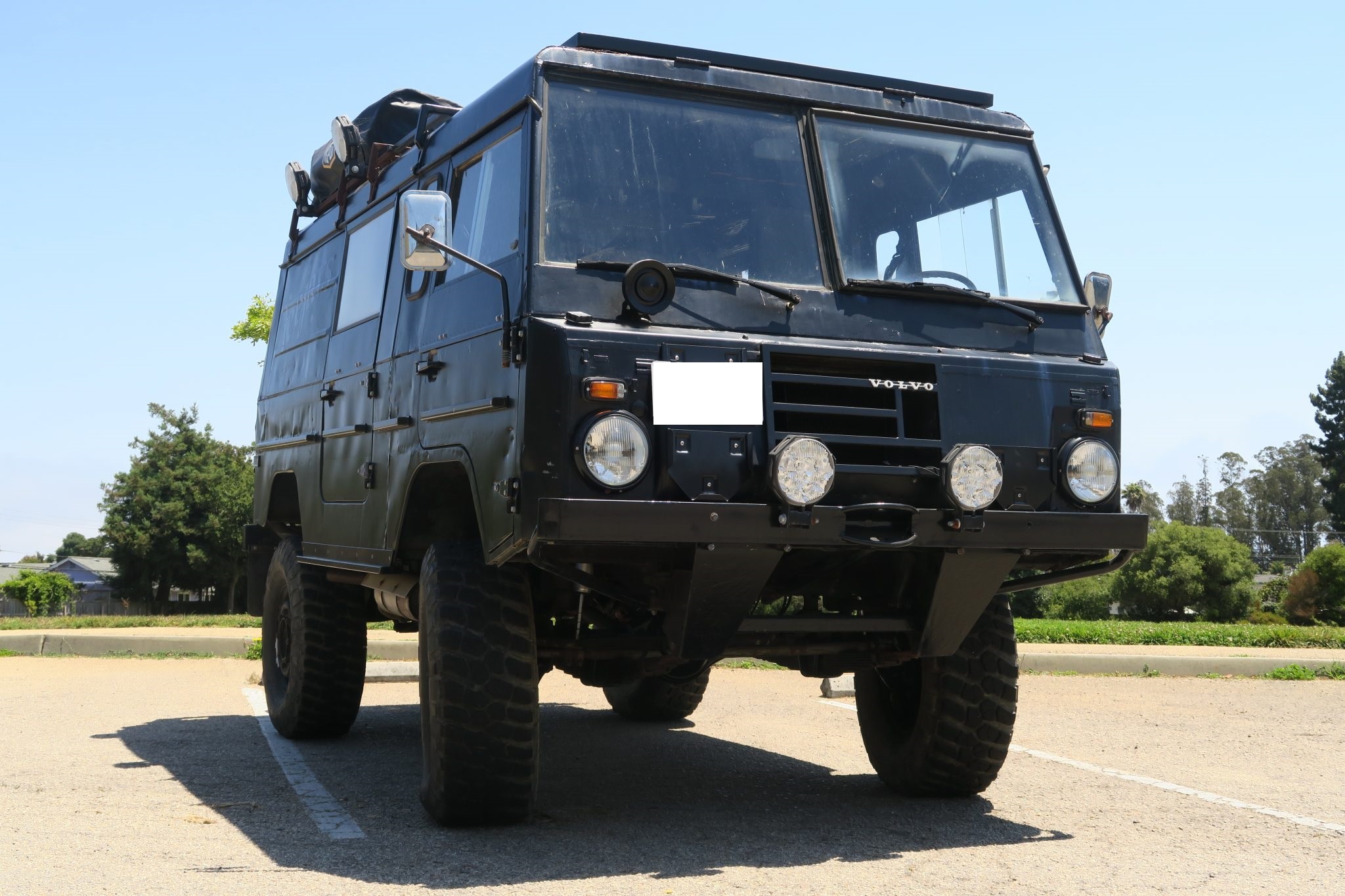 Eight-lug steel wheels are mounted with 315/75 BFGoodrich Mud-Terrain tires, with the fronts said to require replacement along with the tie rods. The braking system was refreshed under current ownership with stainless steel flex lines as well as a new booster, wheel cylinders, and shoes. The suspension is fitted with Fox Performance Series 2.0 shocks.