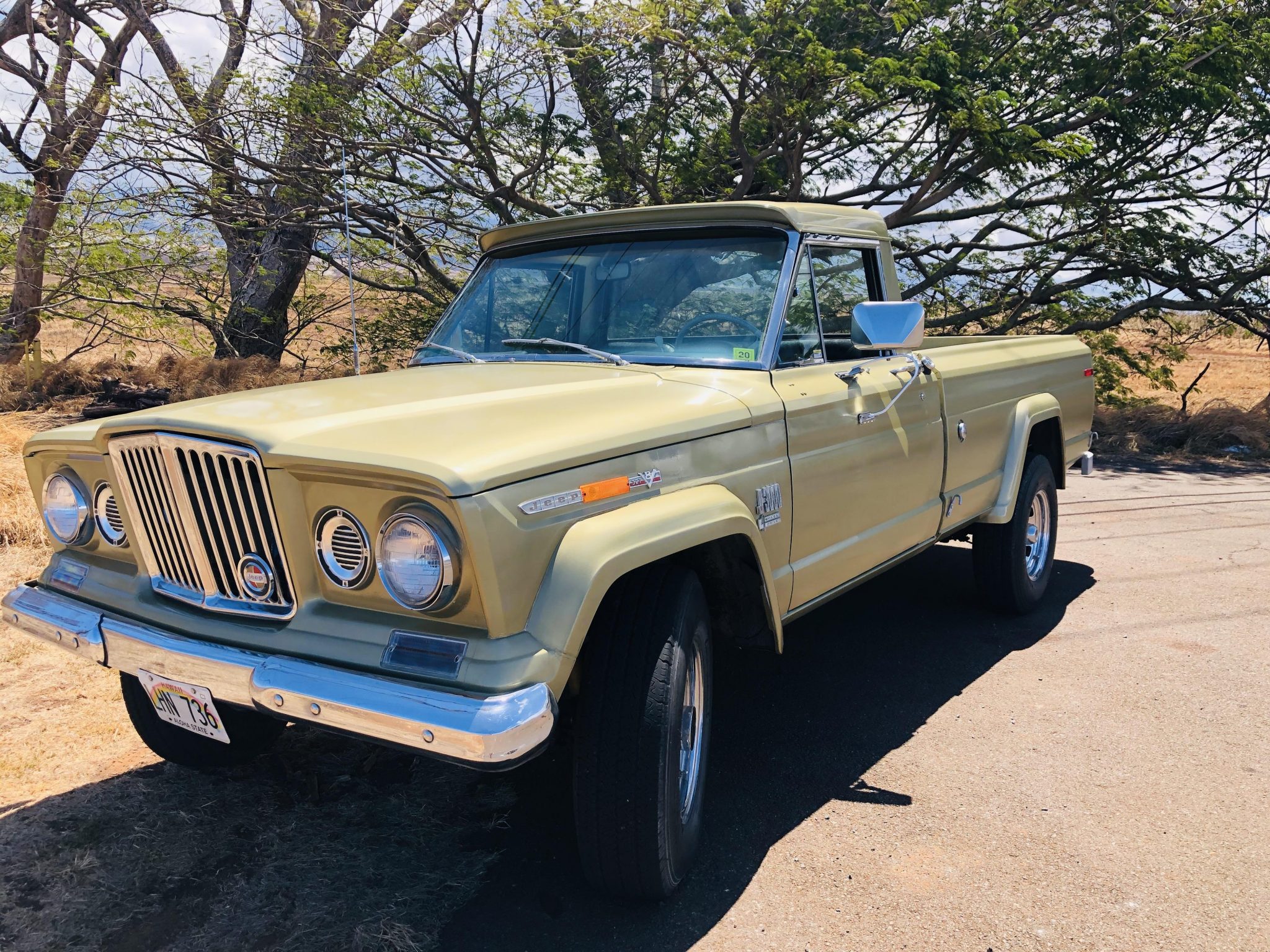 Chrome-finished aftermarket 16″ wheels are mounted with 235/85 Bridgestone V-Steel R265 tires. The brakes were reportedly overhauled since the seller’s purchase with work that included rebuilding the brake booster, flushing fluid, and replacing the master cylinder, four wheel cylinders, lining and hardware, and brake hoses. Additional work to the suspension is said to have included replacing the front and rear shock absorbers and the front leaf springs.