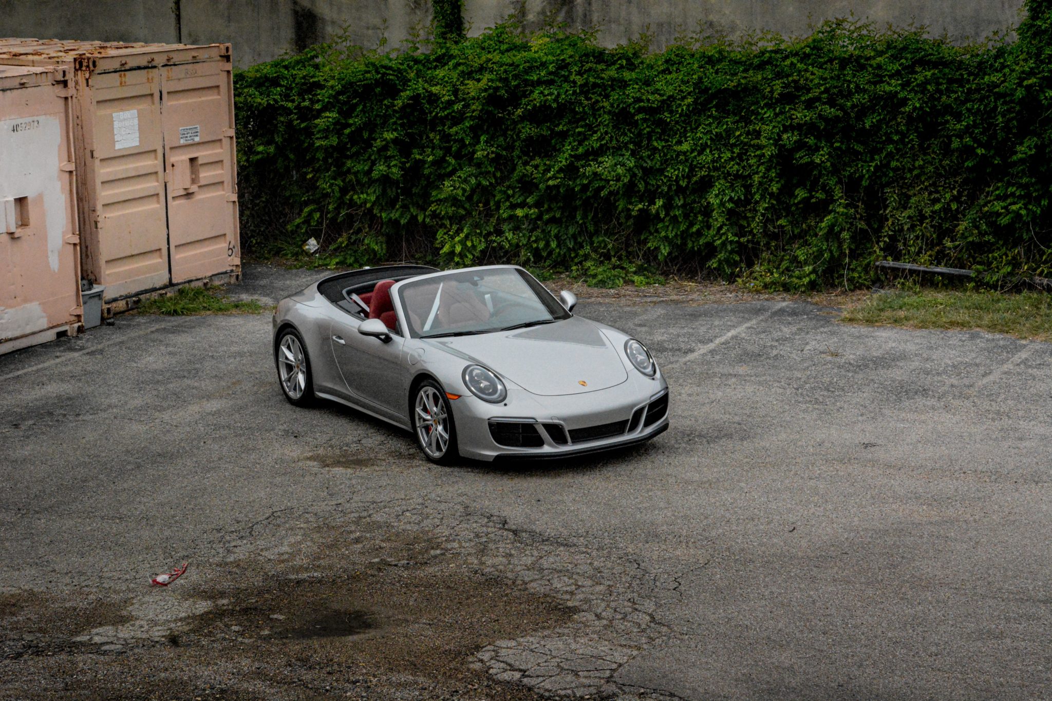 20″ Carrera S wheels are mounted with Pirelli PZero tires measuring 245/35 up front and 305/30 out back. Braking is handled by six-piston front and four-piston rear monoblock calipers over cross-drilled and vented discs. The car is equipped with Porsche Dynamic Chassis Control, an optional front axle lift system, and a rear axle steering system.