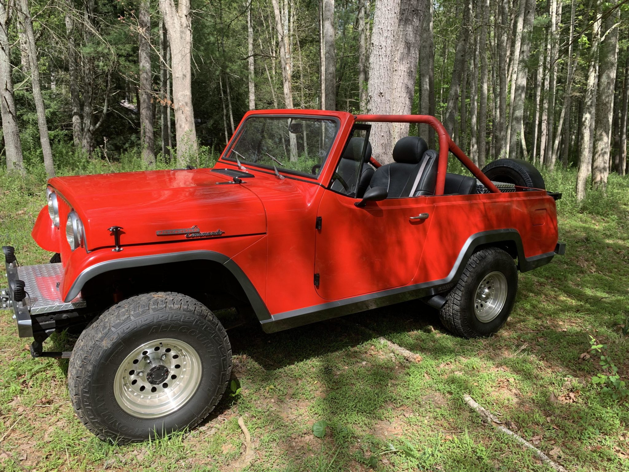 Aluminum 15″ wheels wear 31″ Ironman All-Country A/T tires, and a spare is mounted to a swing-out carrier at the rear. The metallic gray aluminum hardtop is equipped with sliding side windows as well as roof rails. The braking system has been converted to four-wheel discs and the master cylinder, lines, and other items replaced.