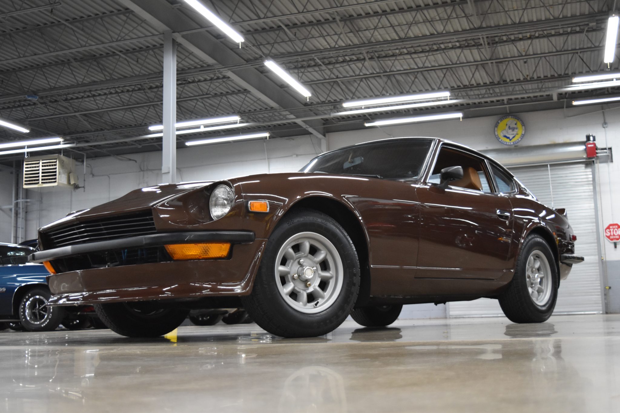 Minilite 14″ alloy wheels are wrapped in Semperit Spider radial tires said to have been installed in 1978, while a black 14″ steel spare wheel wears a Bridgestone tire. Additional equipment includes matte-black plastic bumper covers, a painted front valance, and a heated rear window, plus chrome-accented door handles, window trim, and Z emblems.