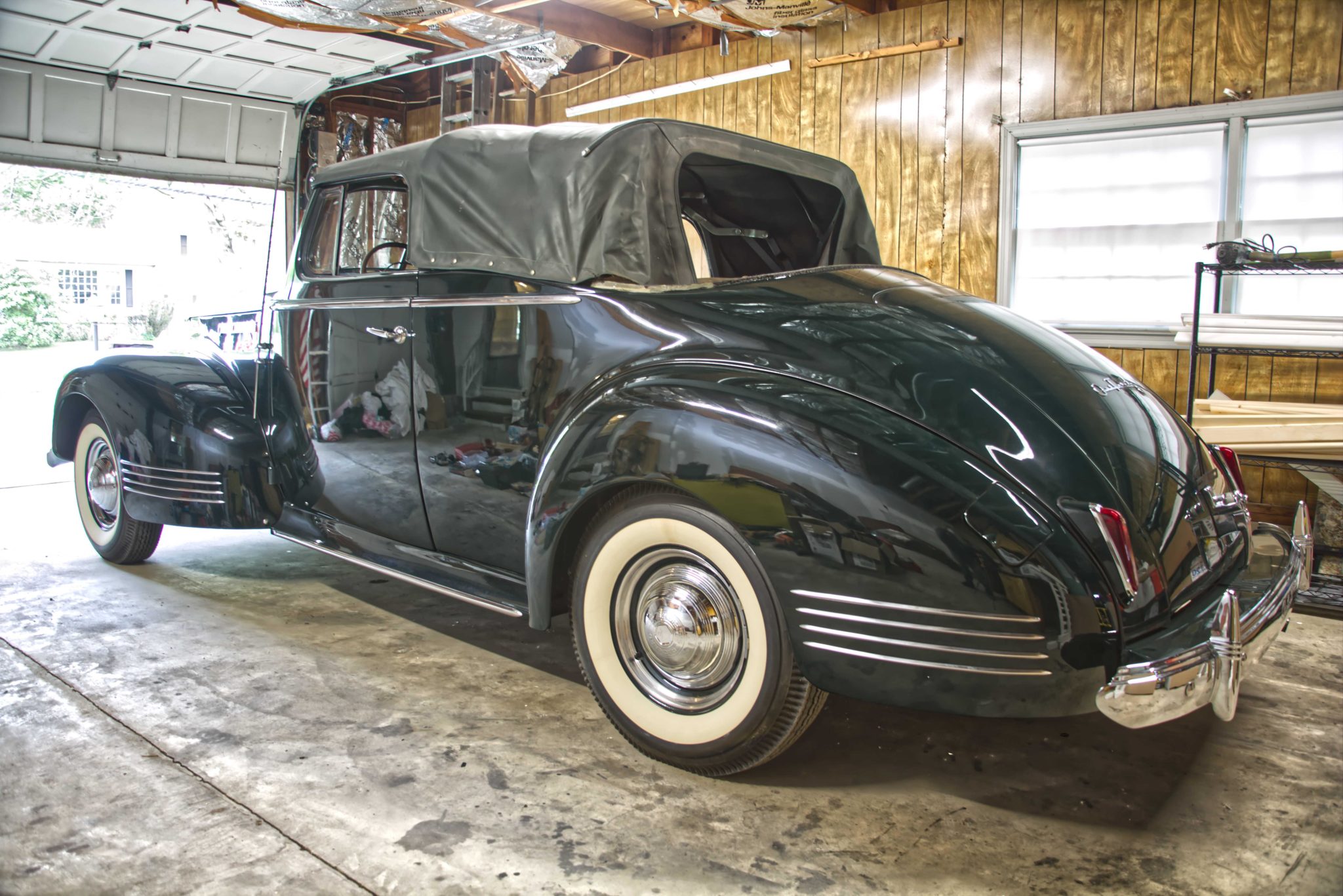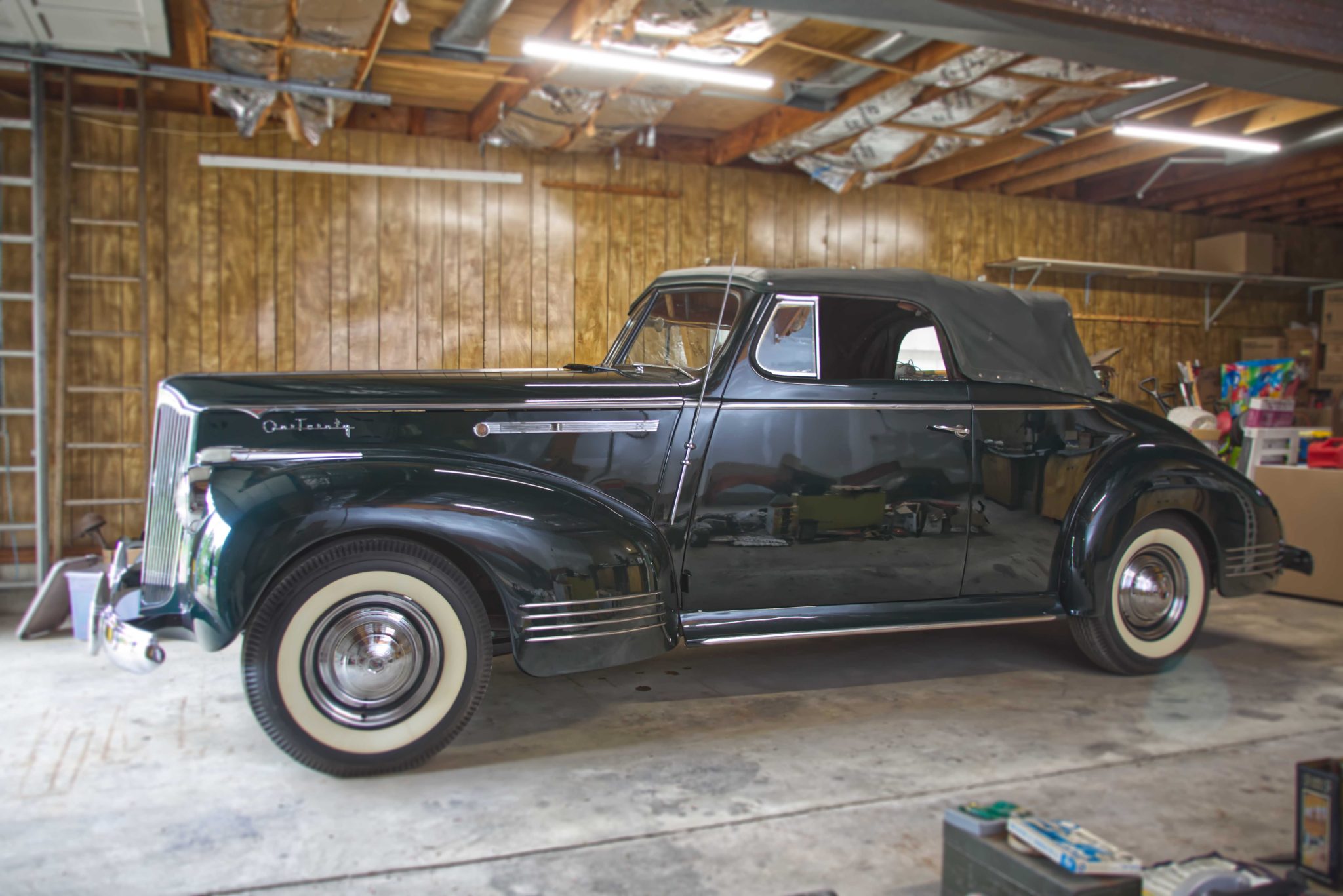 Whitewall tires are fitted on 15″ steel wheels with Packard-branded chrome covers and accent trim rings. Braking is handled by four-wheel drums. One-Twenty models featured coil springs up front with a leaf-sprung live axle at the rear.