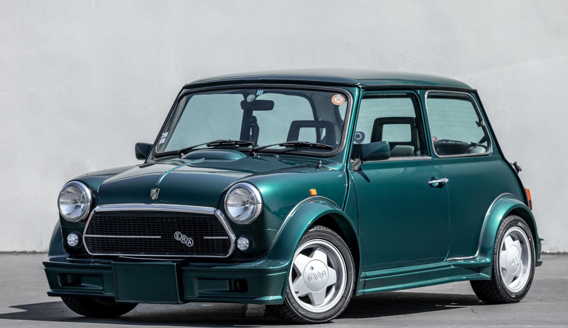 Trackstar 13″ alloy wheels are equipped with ERA center caps and wear Yokohama tires that were purchased in 2019. The power-assisted brake system features four-piston MG Metro calipers and ventilated discs up front, along with drums out back. New rotors, pads, wheel cylinders, and shoes were installed in 2019. A new steering rack was also fitted, and the suspension was overhauled with a coil spring conversion, new front subframe mounts, extended tie bars and rod ends, GAZ shocks, polyurethane bushings, and rear camber toe plates.
