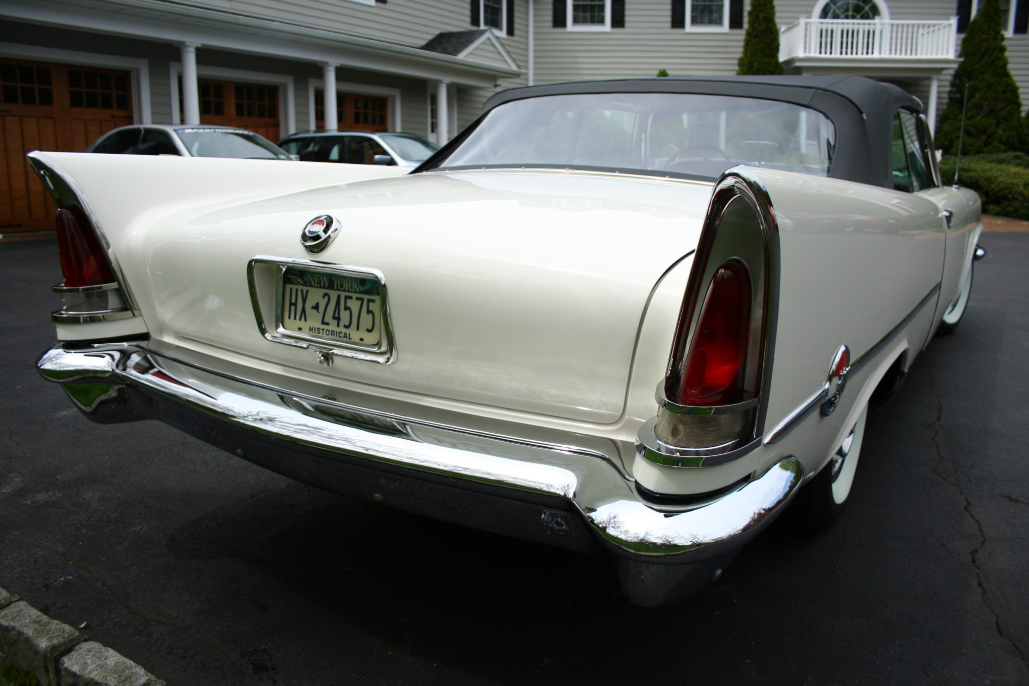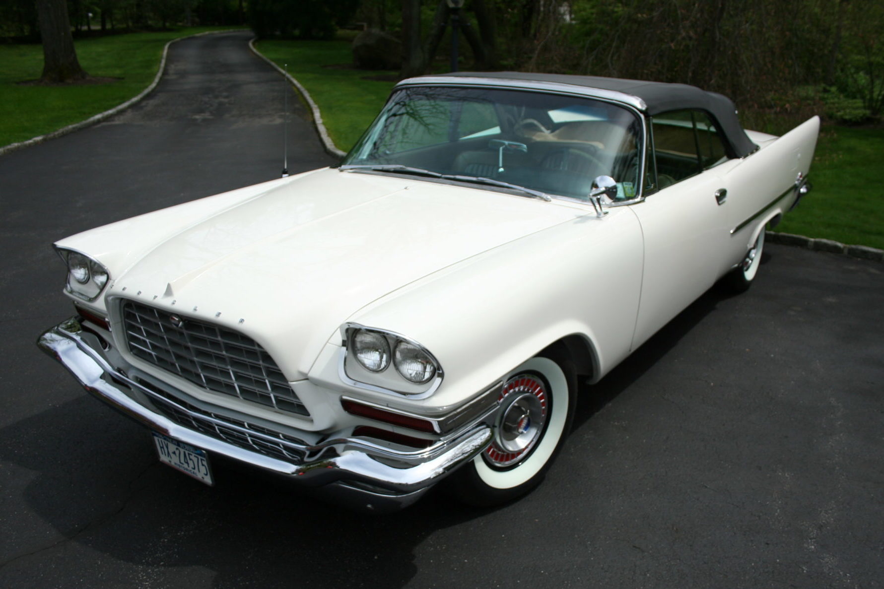 The power-operated black soft top features a plastic rear window and is photographed both raised and lowered. Steel wheels feature chrome hubcaps with painted inserts and are mounted with wide-whitewall tires. Power-assisted steering and brakes were standard equipment on the 300D, and service on the latter in 2019 included cutting the front drums, adjustment, and a fluid flush. The 300D rode on a 126″ wheelbase and featured torsion-bar front suspension.