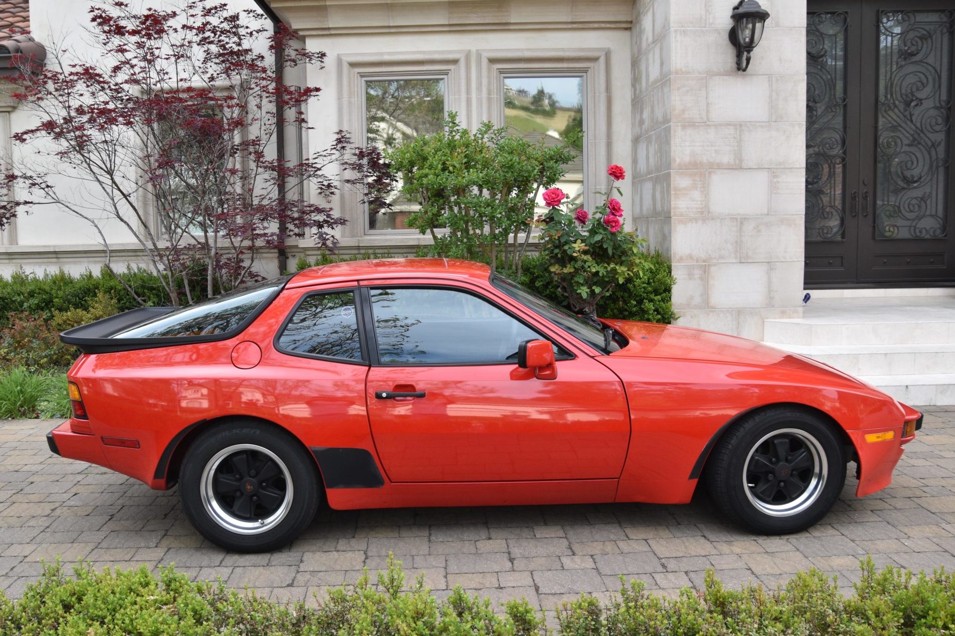 Fuchs 15″ alloy wheels with black centers and polished lips wear Falken Ziex tires that display date codes from 2012. The wheels were refinished in 2014, and the previous owner also replaced the brake lines and powder coated the calipers. The seller replaced the front brake rotors and windshield.