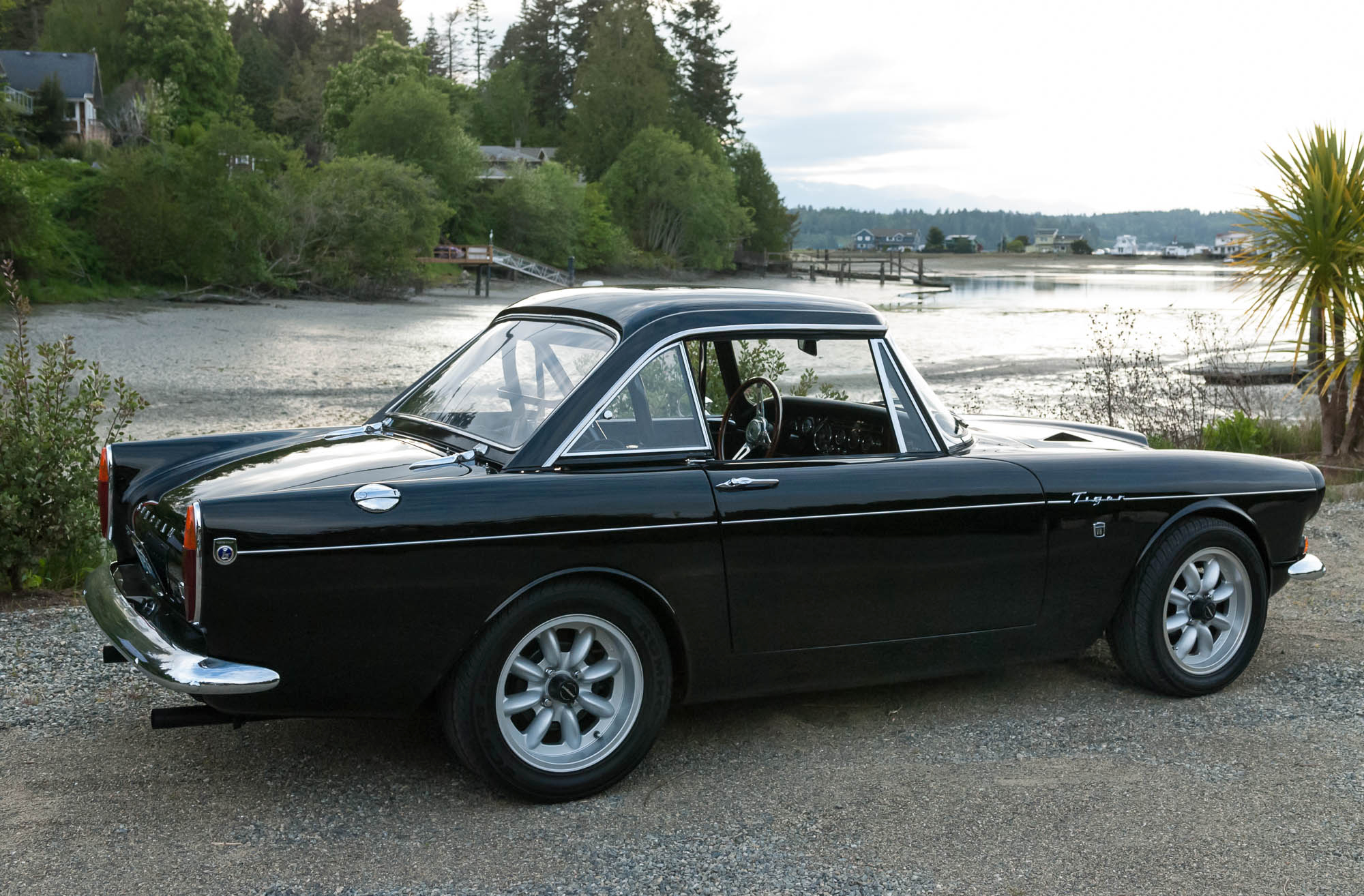 15” Panasport wheels measure 6” in width up front and 7” out back and wear Kuhmo Ecsta AST tires that were purchased in 2012. The black canvas soft top can be seen in the raised position in the gallery below, and a black factory hardtop is also included along with a hardtop hoist. The brightwork was re-chromed during the refurbishment, and areas are noted to show signs of age.