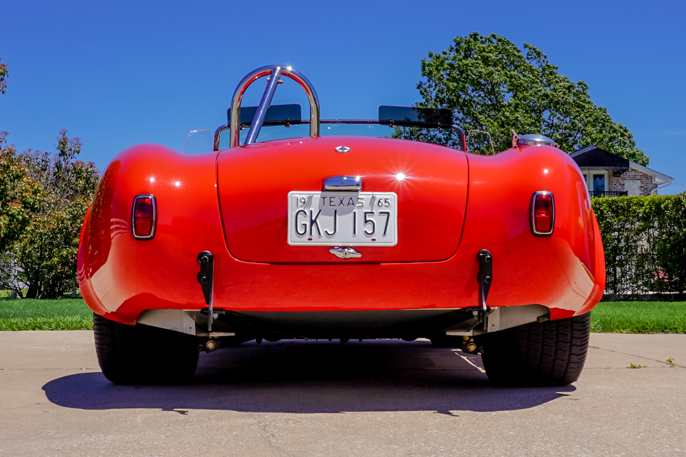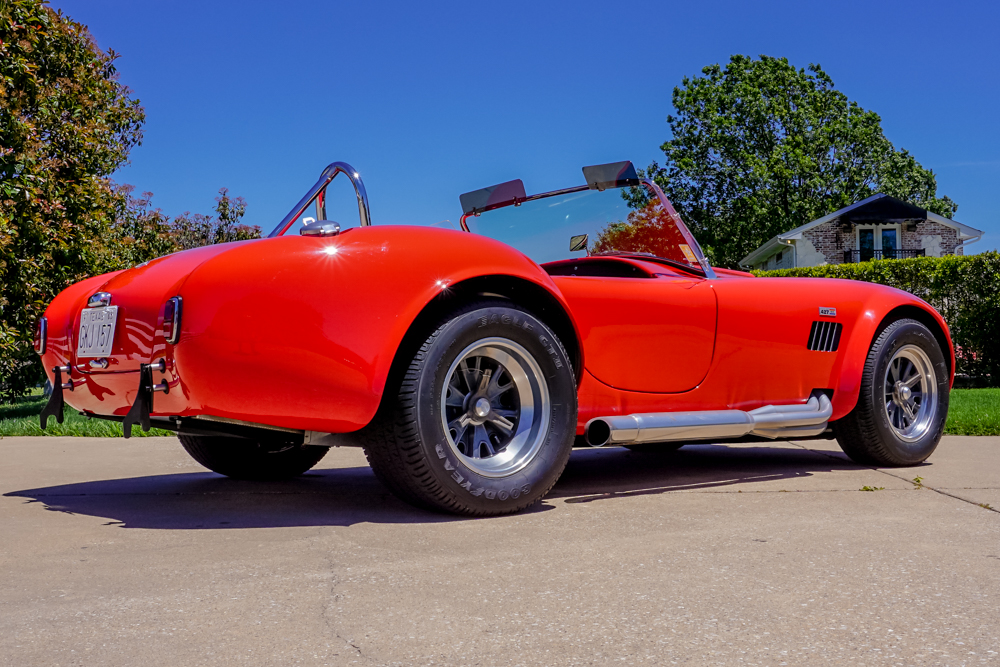 Halibrand-style 15″ wheels are held on with knock-off spinners and are wrapped in Goodyear Eagle GTII tires measuring 235/60 on the front and 295/50 on the back. Adjustable coilovers and ventilated disc brakes are fitted at all four corners.