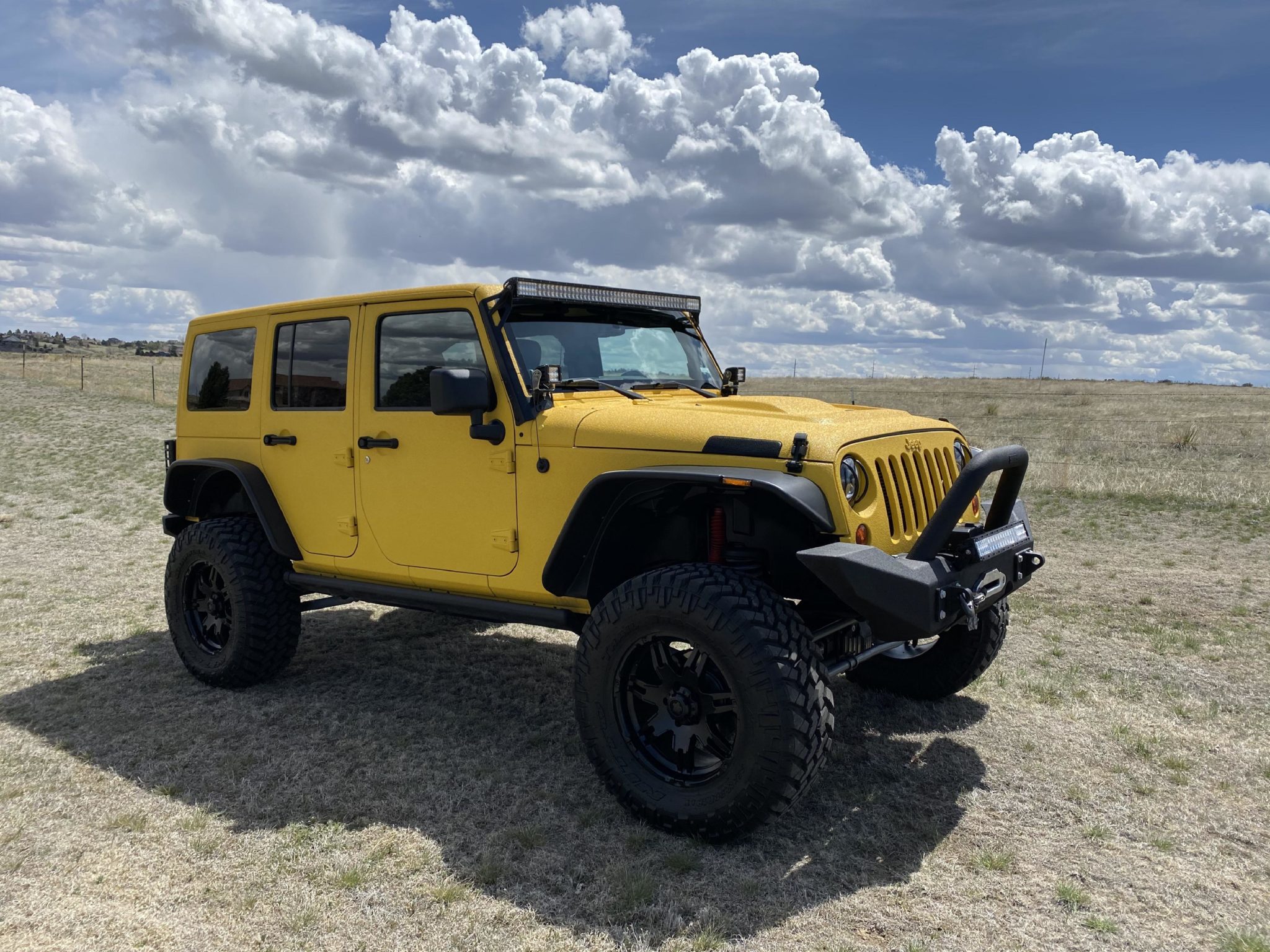 Lighting consists of JW Speaker headlights and three independently-controlled LED bars. A 4.5″ suspension lift clears 35″ Nitto Trail Grappler M/T tires mounted on 18″ Ultra Gauntlet wheels. Suspension modifications include adjustable four-link long-arms as well as aftermarket shocks and springs.