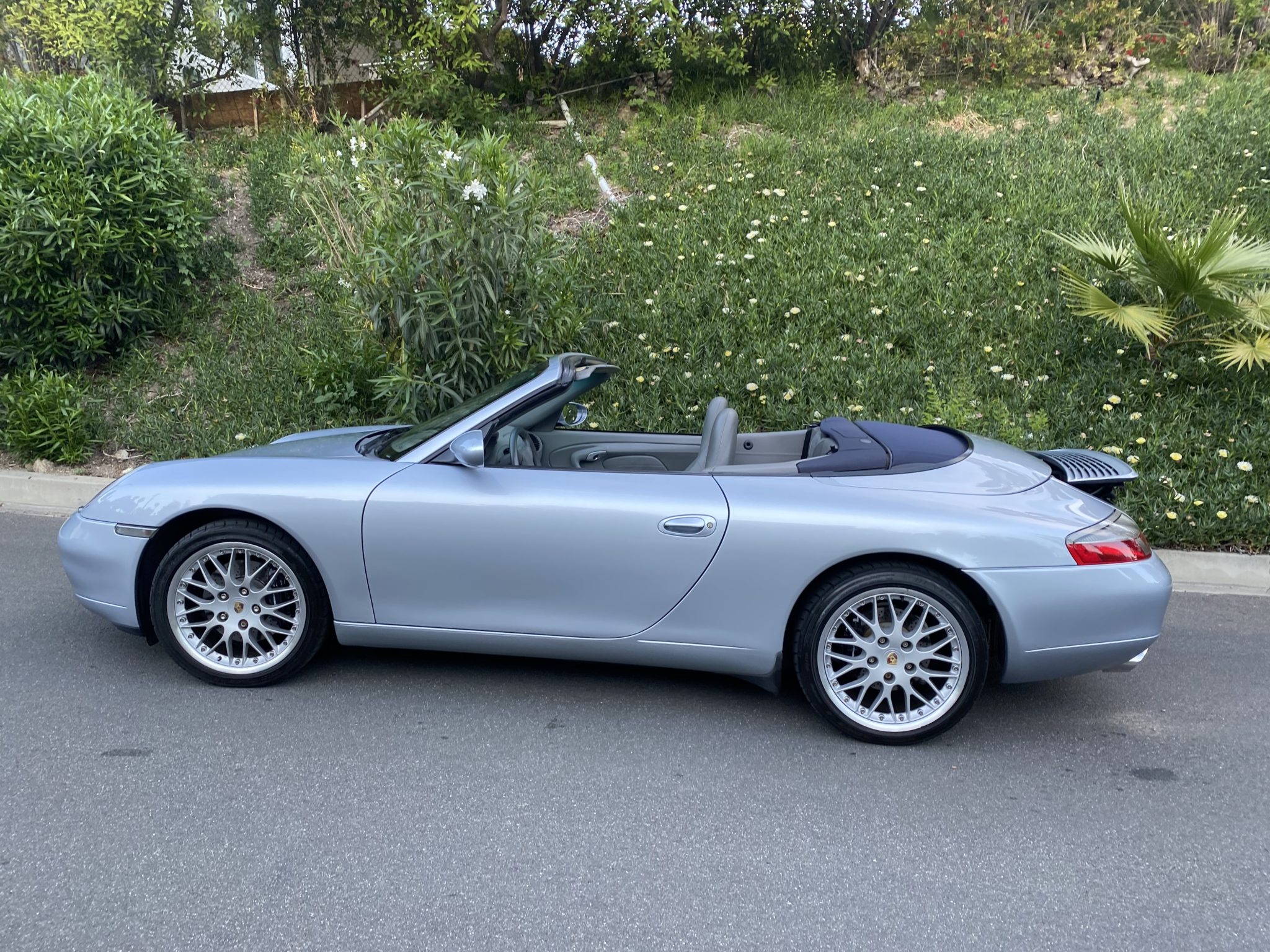 Staggered 18″ wheels wear colored Porsche crest center caps and are wrapped in Dunlop Direzza tires measuring 225/40 up front and 265/35 out back.