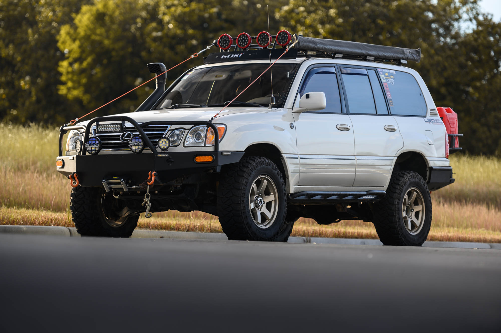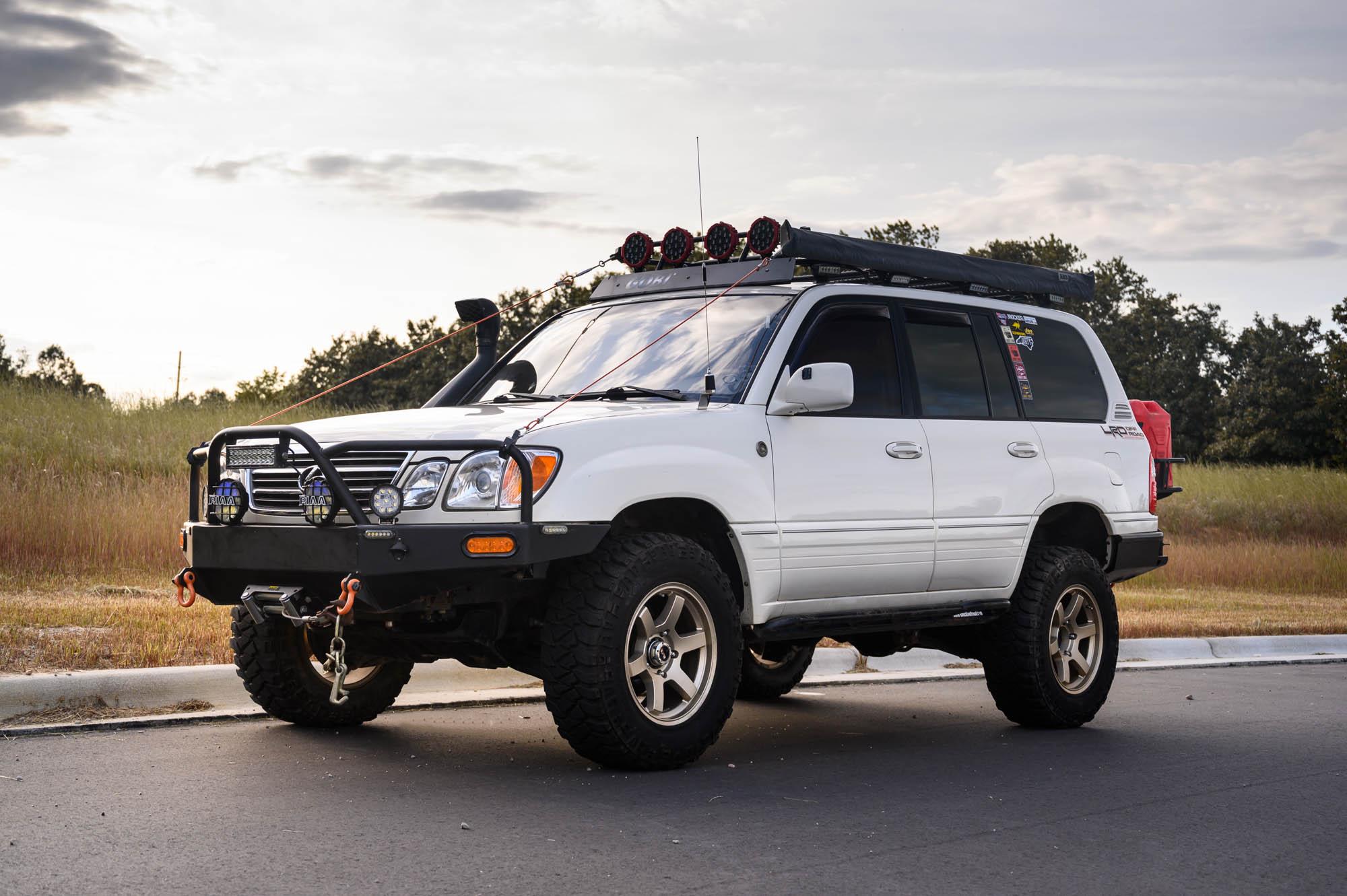 Gold-painted Level 8 Mk6 18″ wheels are wrapped in 275/70 Mickey Thompson Baja MTZ P3 tires. Suspension modifications include a 3″ Old Man Emu lift kit with OME shocks, Total Chaos Fabrication upper control arms, Metal Tech 4×4 lower control arms, and replacement front CV axles. Brake work was reportedly performed in November 2019, and Slee Offroad brake lines and new wheel bearings have been installed.