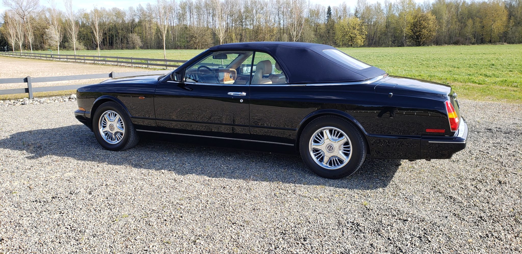 Pininfarina built the Azure’s shell and convertible top in Italy and shipped them to Crewe for assembly. The soft top hydraulics on this example are said to have been rebuilt by Top Hydraulics while under prior ownership. Videos demonstrating the top’s operations are viewable here and here.