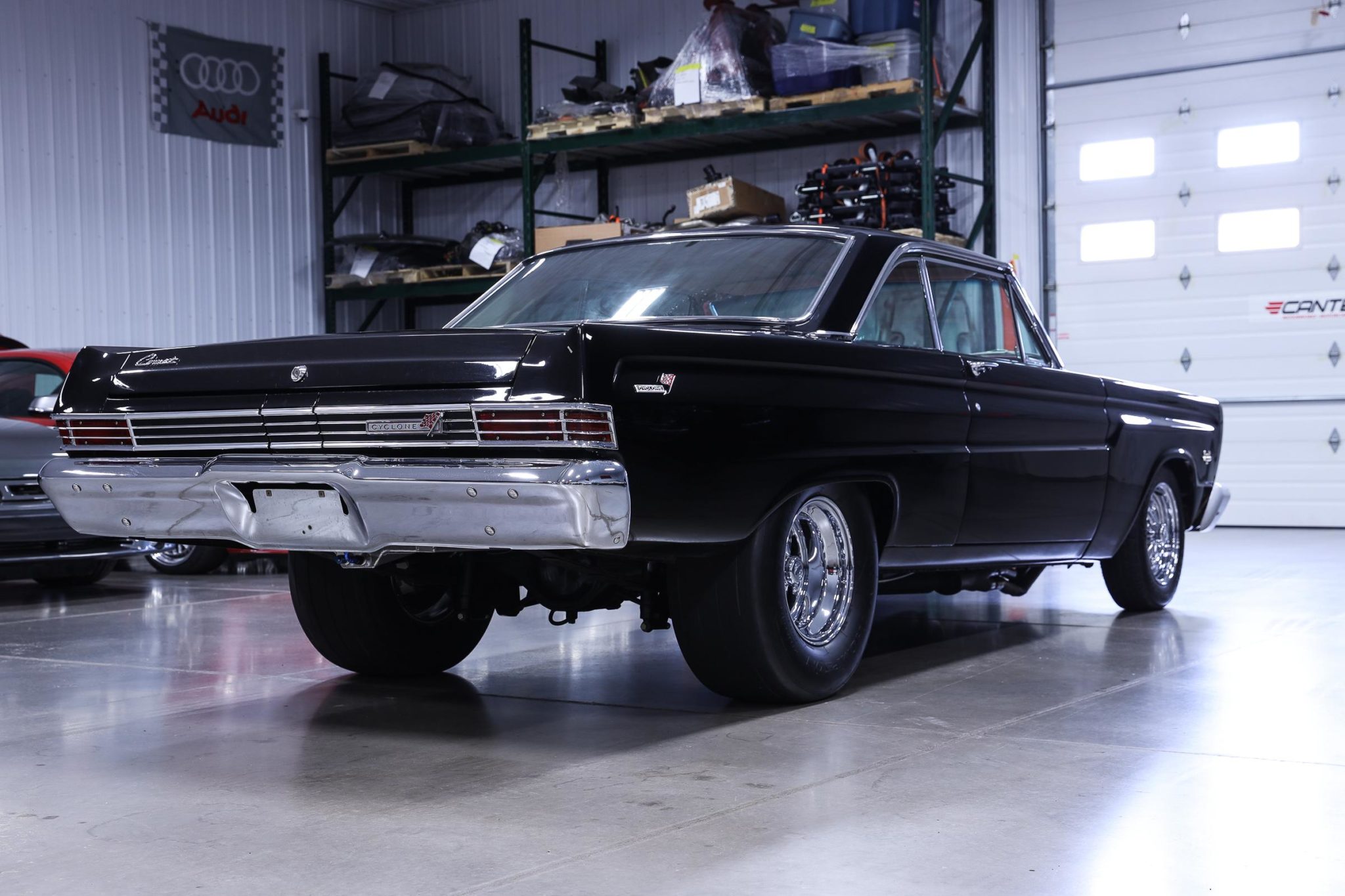 Staggered chrome 15″ Cragar SS wheels are fitted with 26″×7.5″ Hoosier Pro Street radials up front and 295/65 Mickey Thompson slicks at the rear. Disc brakes are equipped at all four corners.